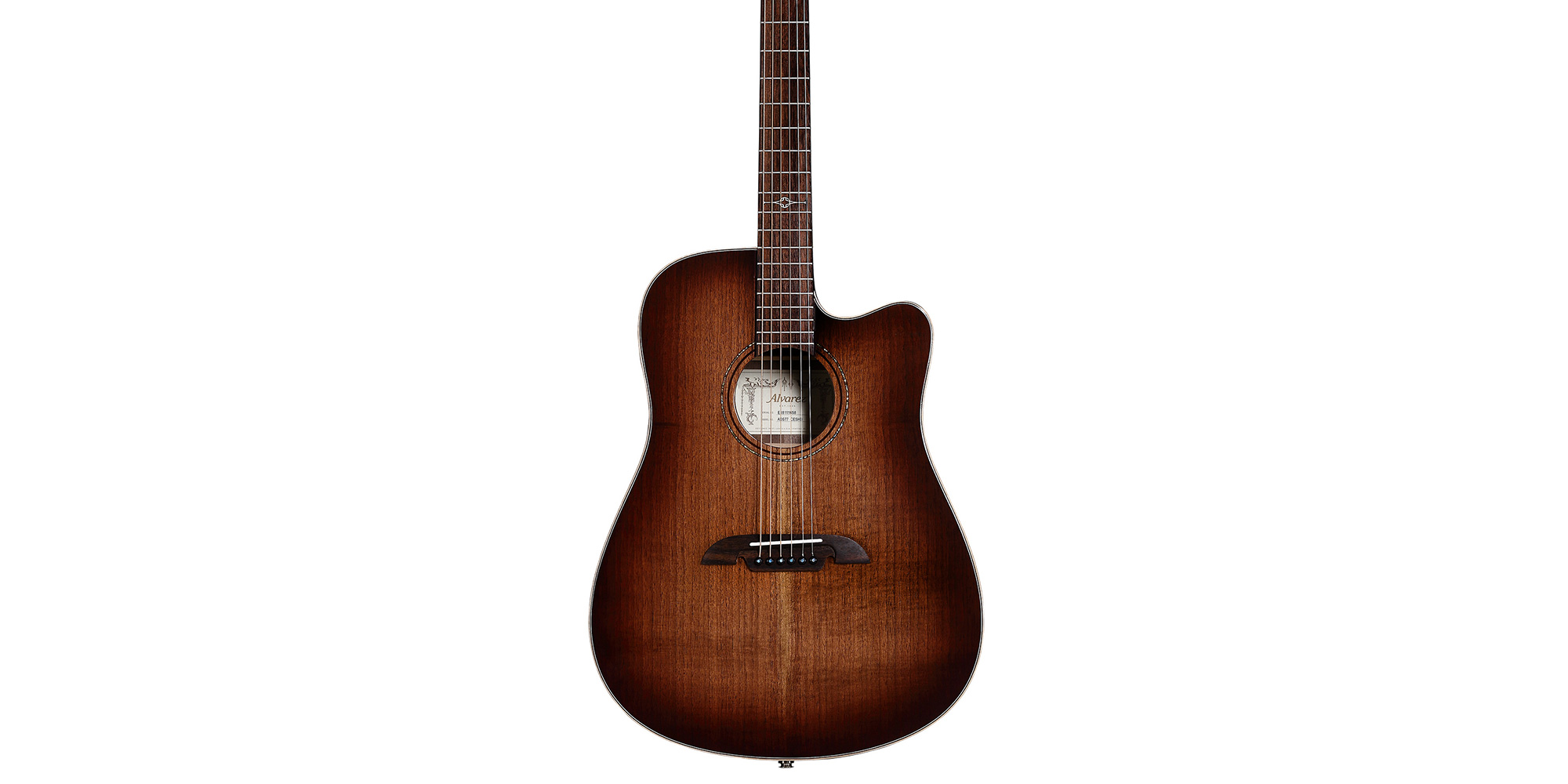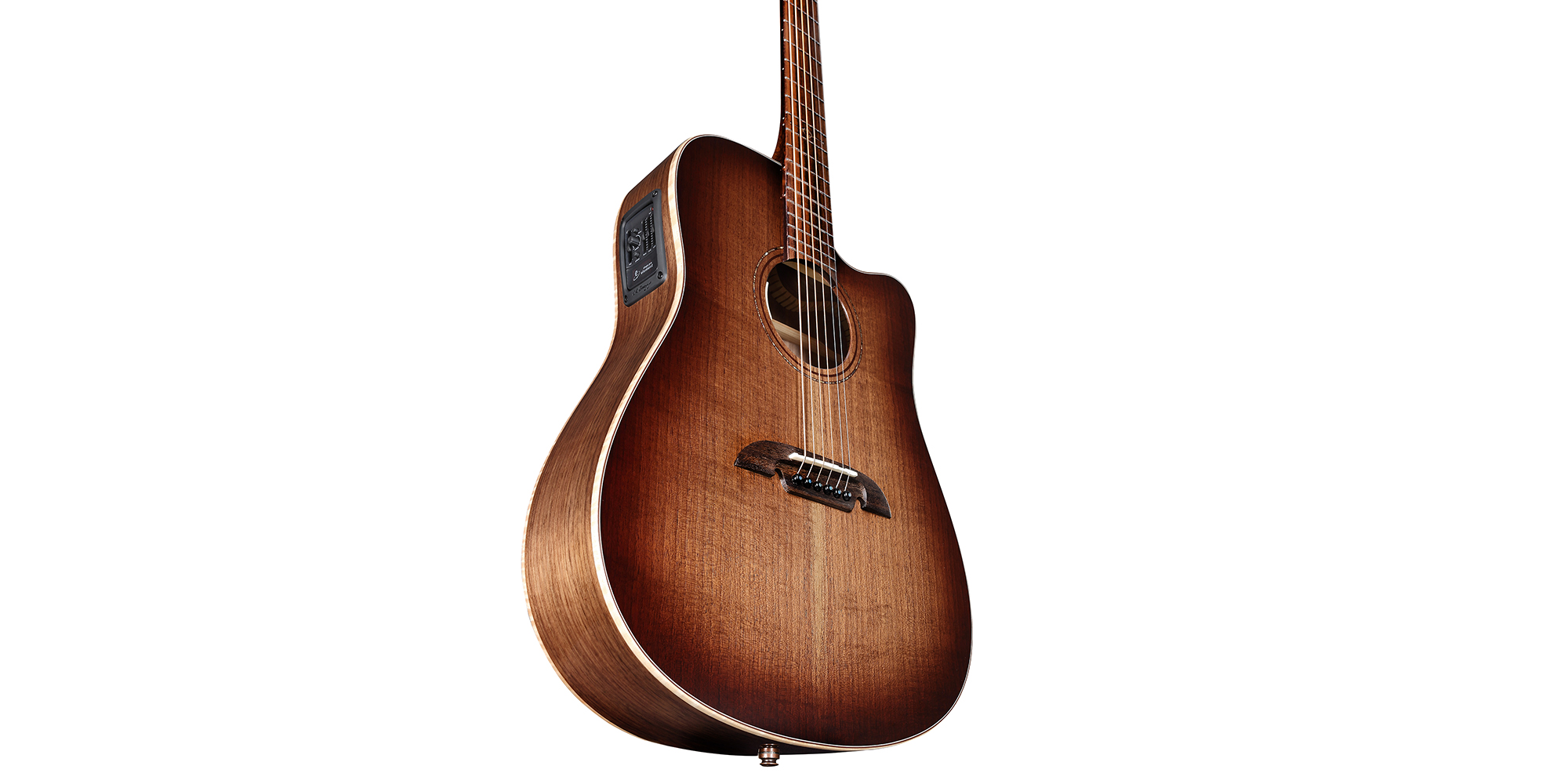The ADWS77CESHB is a lively dreadnought and delivers a warm, focused tone from its all Walnut construction. Its body is slimmer than our standard dreadnought shape, making it a very comfortable instrument while retaining great projection and quick response. The gloss Shadowburst finish on the Walnut creates a rich aesthetic which is perfectly framed by the Flame Maple binding. This is a beautiful guitar and would be a great choice for gigging with its slimmer depth and LR Baggs electronics.