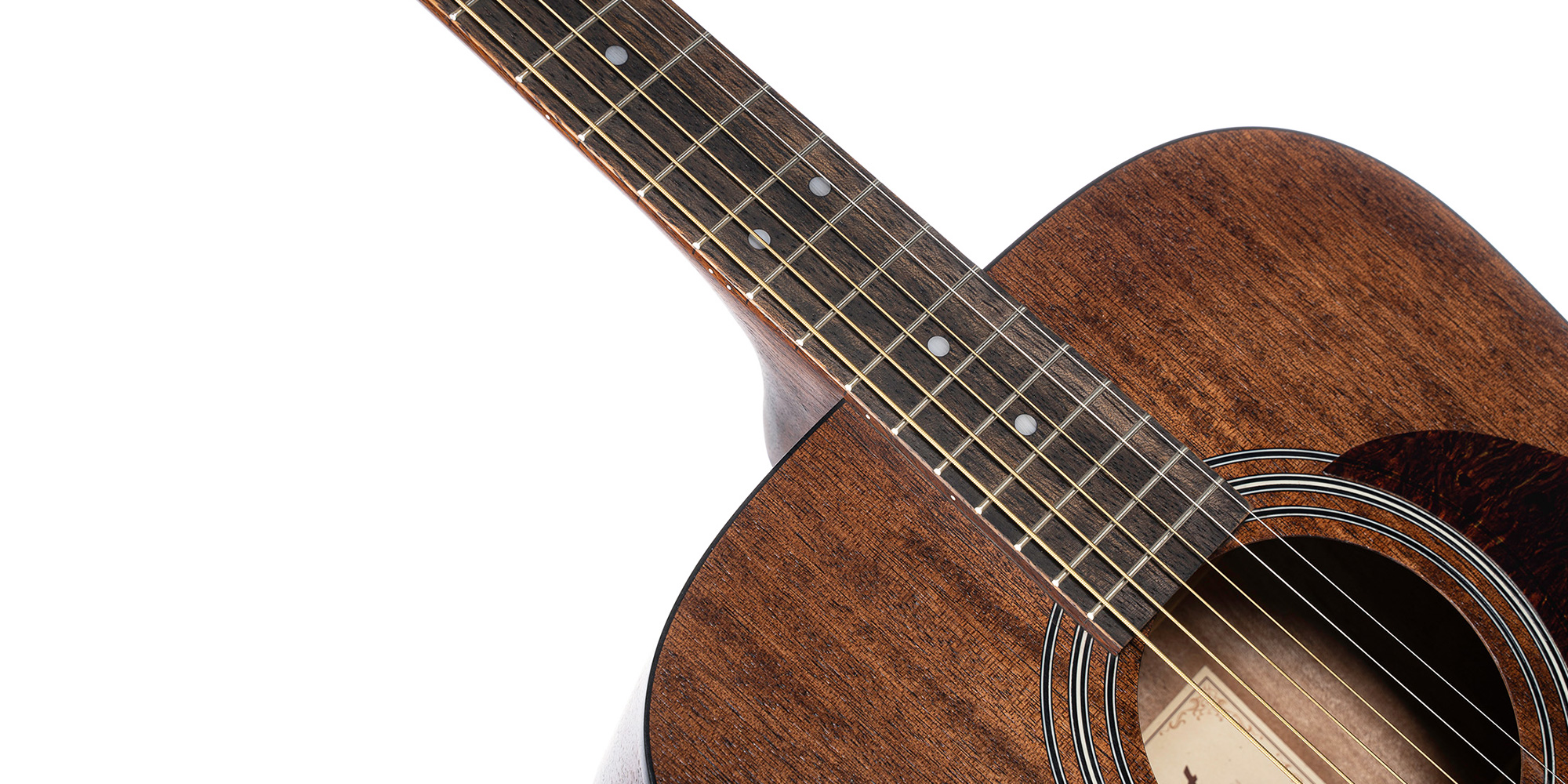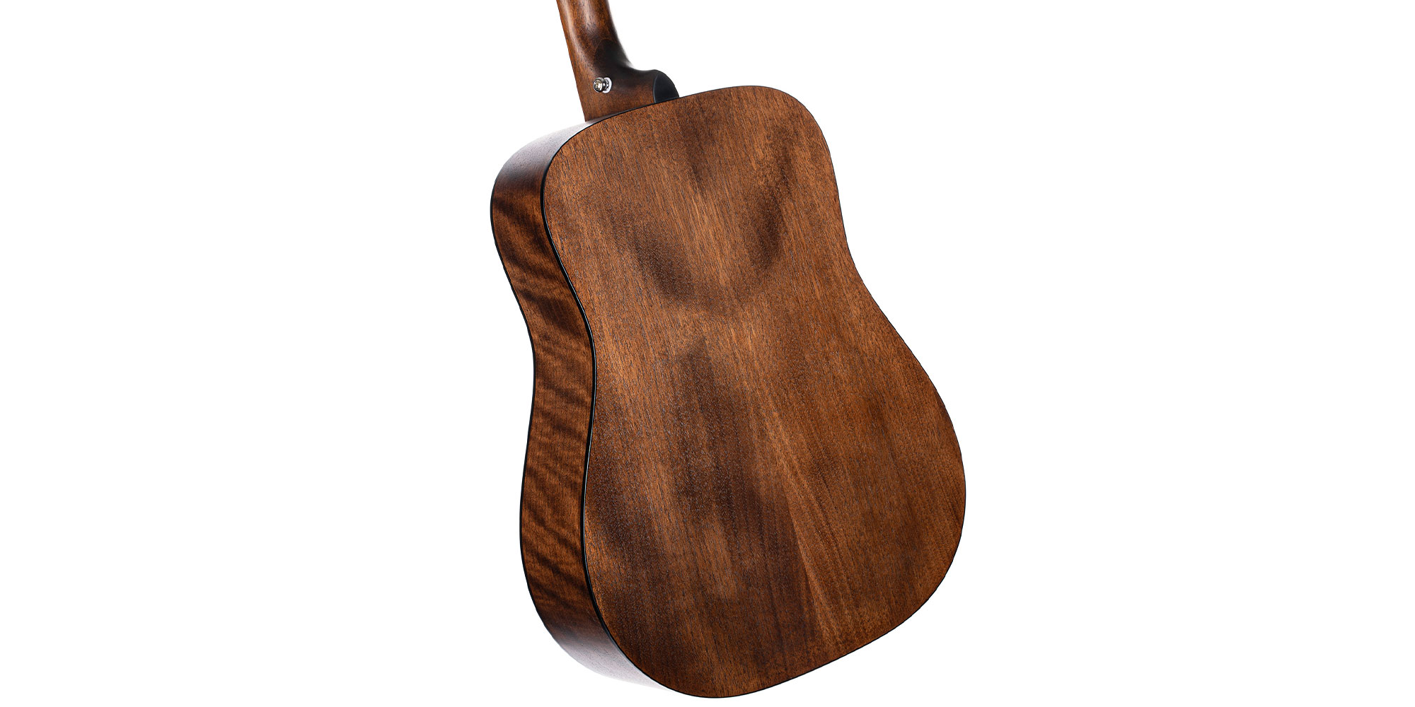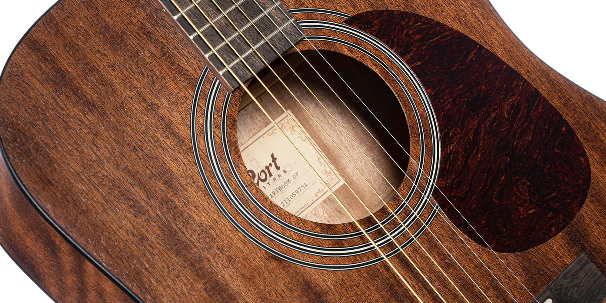As Cort’s homage to the great vintage acoustic guitars, the Earth Series represents the look, sound, feel and playability of those fine instruments with uncompromising quality and excellent value. The dark, open-pore finish of the Earth60M ensures the wood choice to resonate naturally. In terms of tonal quality, players will find that the Earth60M’s mahogany provides balanced dynamics, with ample bottom-end response that doesn’t inhibit the top-end.