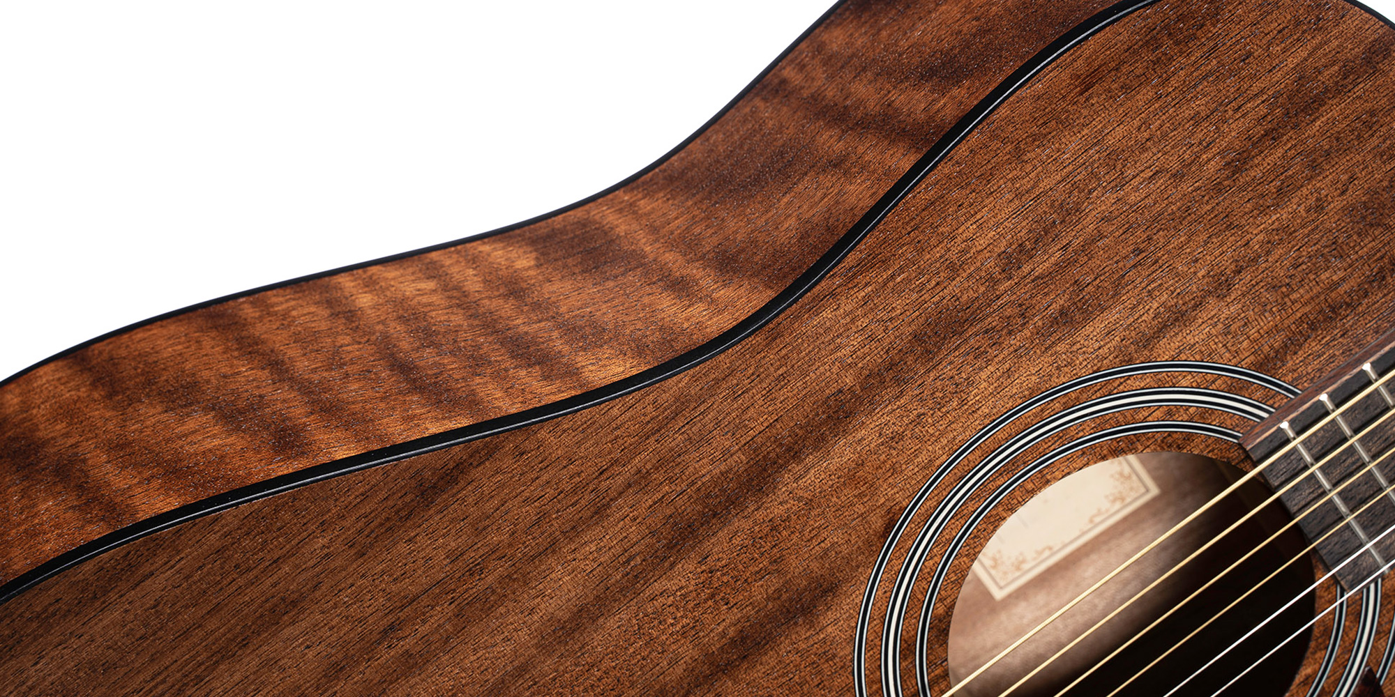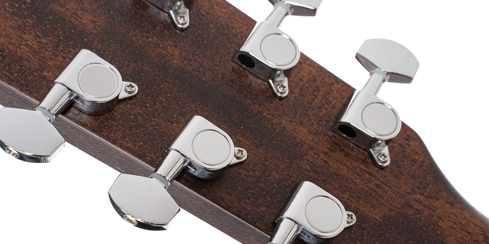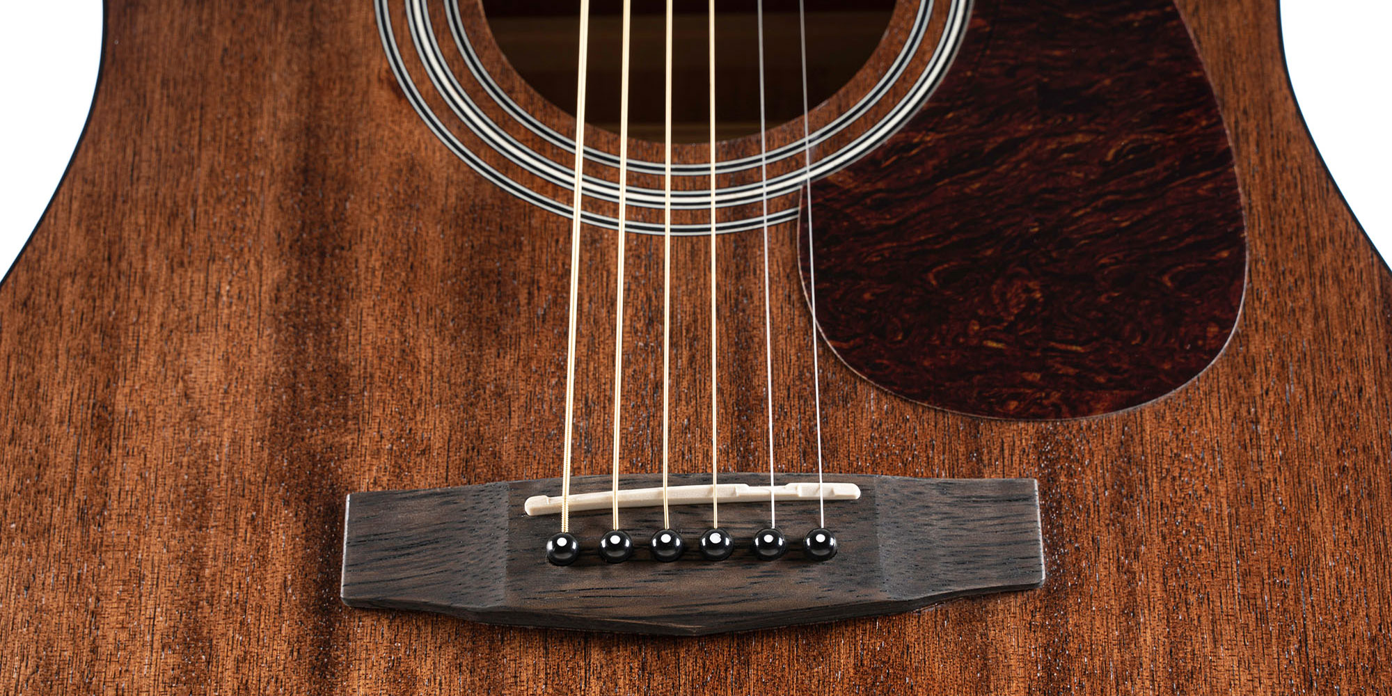 As Cort’s homage to the great vintage acoustic guitars, the Earth Series represents the look, sound, feel and playability of those fine instruments with uncompromising quality and excellent value. The dark, open-pore finish of the Earth60M ensures the wood choice to resonate naturally. In terms of tonal quality, players will find that the Earth60M’s mahogany provides balanced dynamics, with ample bottom-end response that doesn’t inhibit the top-end.