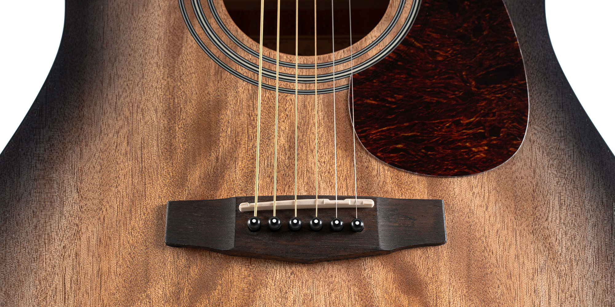 As Cort’s homage to the great vintage acoustic guitars, the Earth Series represents the look, sound, feel and playability of those fine instruments with uncompromising quality and excellent value. The dark, open-pore finish of the Earth60M ensures the wood choice to resonate naturally. In terms of tonal quality, players will find that the Earth60M’s mahogany provides balanced dynamics, with ample bottom-end response that doesn’t inhibit the top-end.