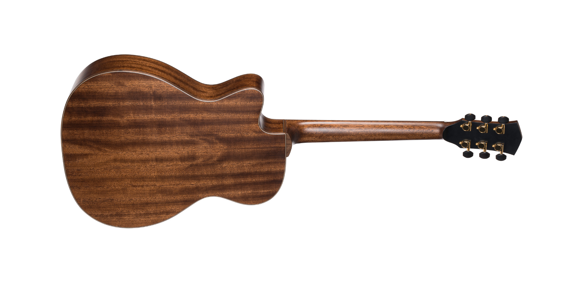 The new Flow Series is the result of expertly carried out research and tests to launch an innovative guitar series most suited for fingerstyle artists and enthusiasts. The OM body sized Flow-OC features a 25.5”(648 mm) neck scale with 1 3/4”(44.5 mm) nut width widely regarded as the ‘golden standard’ among fingerstyle players for its optimal string spacing and string tension. And with its completely redesigned asymmetric neck profile, the playing experience is more comfortable yet faster and facilitates more versatility than ever. The solid red cedar top combined with solid- mahogany back and sides provides deep and warm lows and mids with clean tone definition in the highs, and the use of L.R. Baggs® Anthem dual source system ensures lively and natural tones for any style of playing when plugged in.