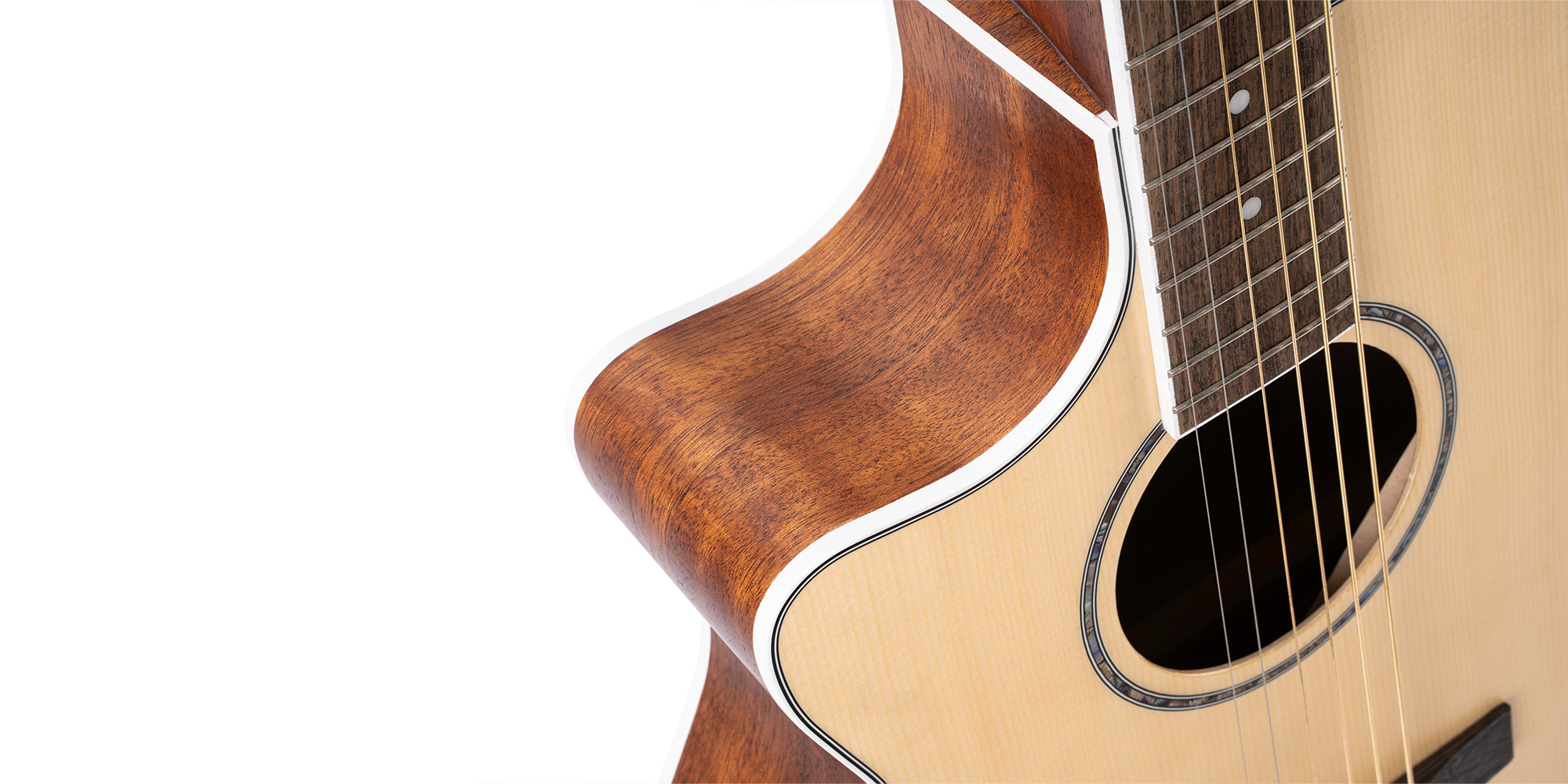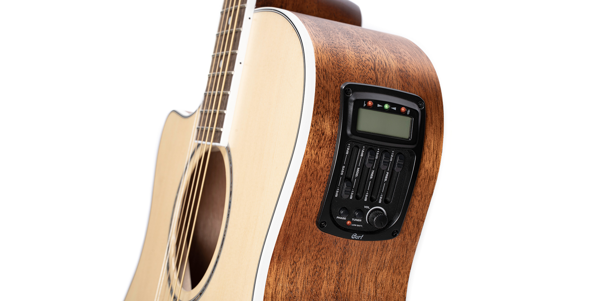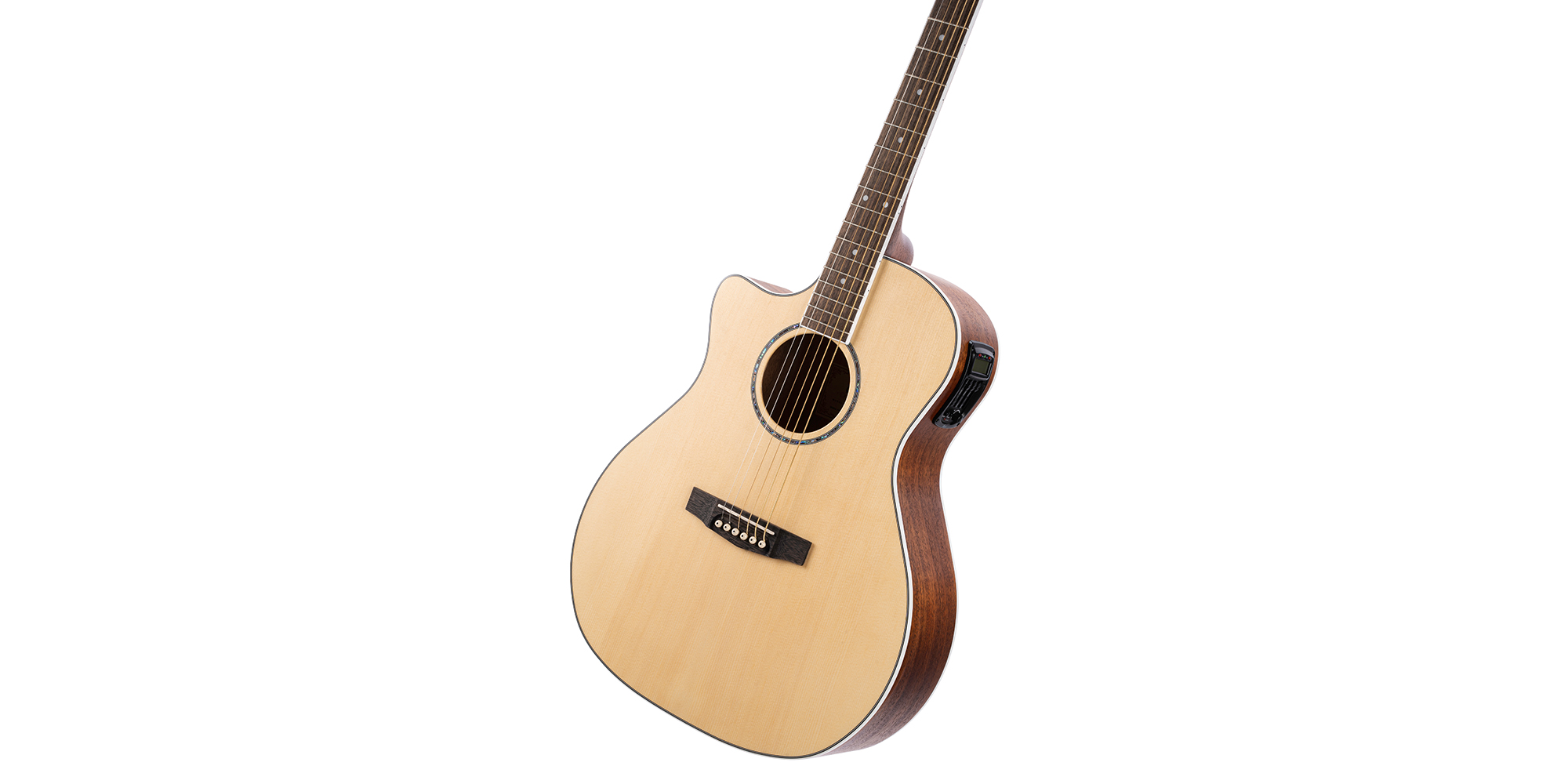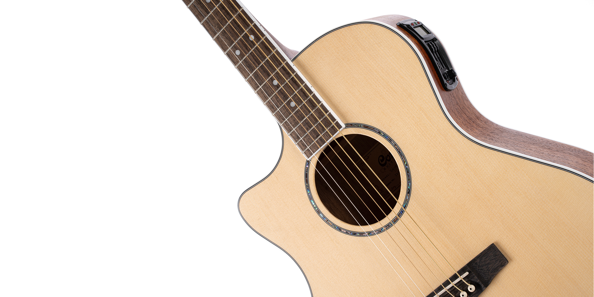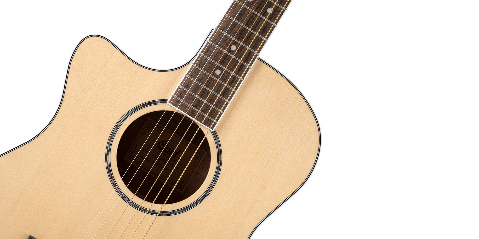 The GA-MEDX expands the popular Grand Regal Series of grand auditorium body acoustics and acoustic-electrics to a more affordable price point with Spruce top, Mahogany back and sides, and the feature-packed CE306T preamp. For those who need a no-frills workhorse acoustic-electric, the GA-MEDX covers the gamut for working musicians who require value as well as quality.