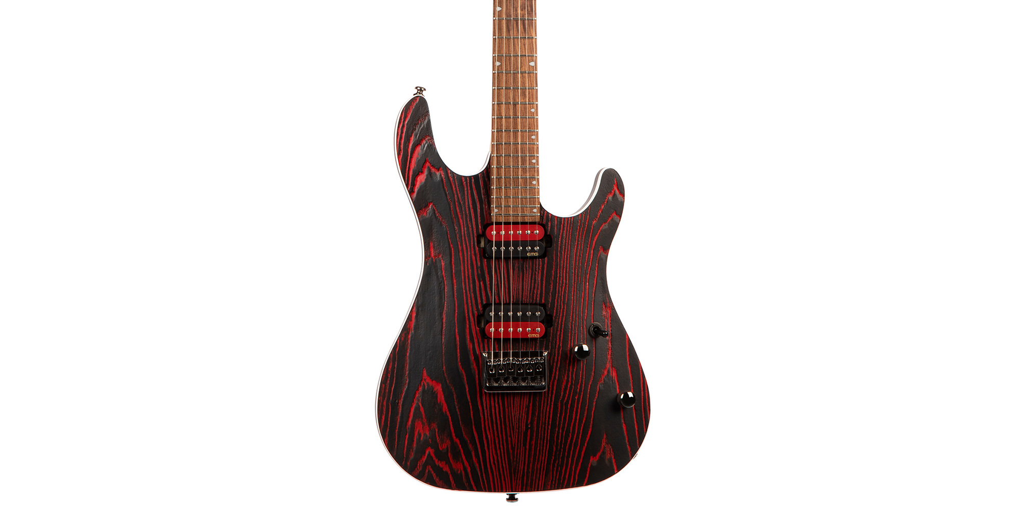For players who are more keen on presenting themselves with gothic, dark presence. Covered in matte black with accented red and gold paint that is only applied on the wood grains of a beautiful ash top to exude an organic vibe, this stunning guitar is also equipped with matching colored EMG® RetroActive Super77 humbuckers that have been tested and proven by the existing KX300 models to be an excellent match for the Mahogany body.