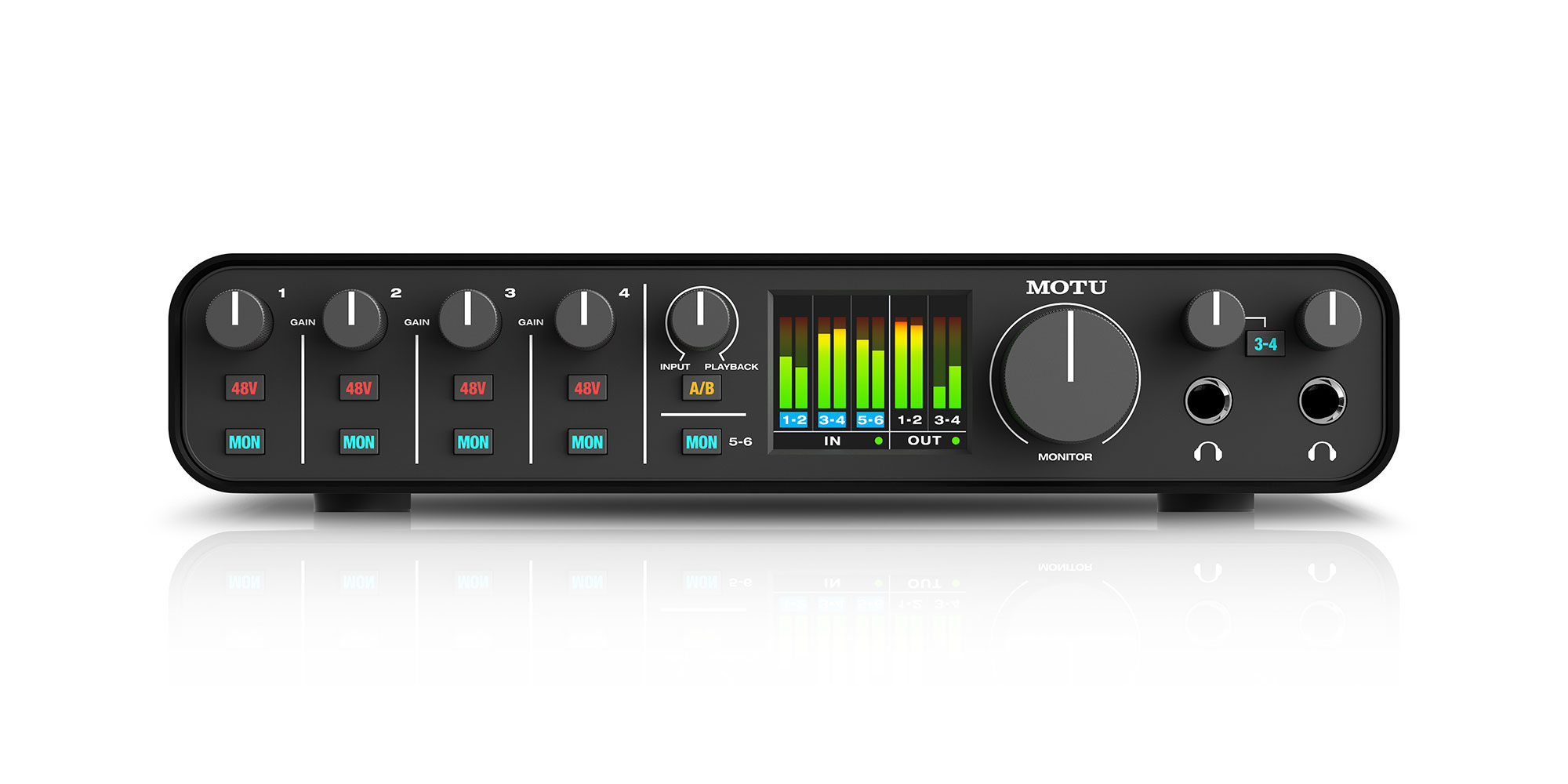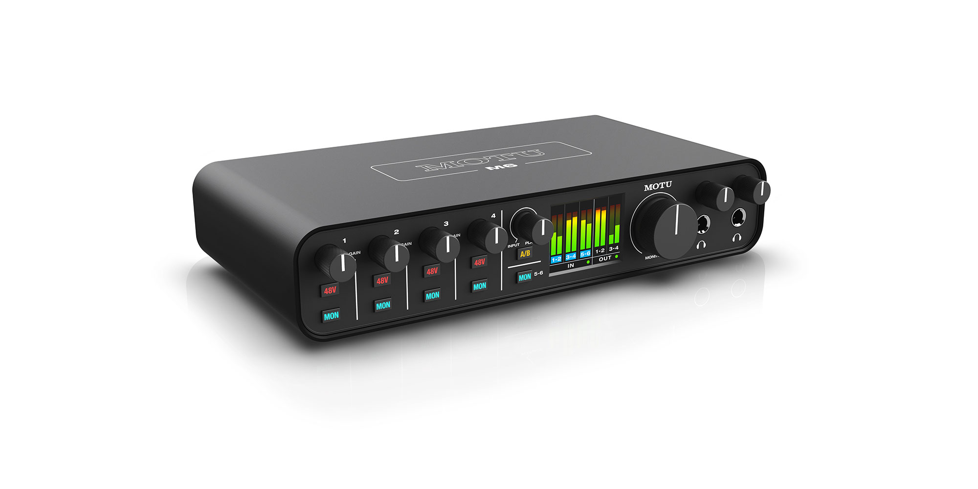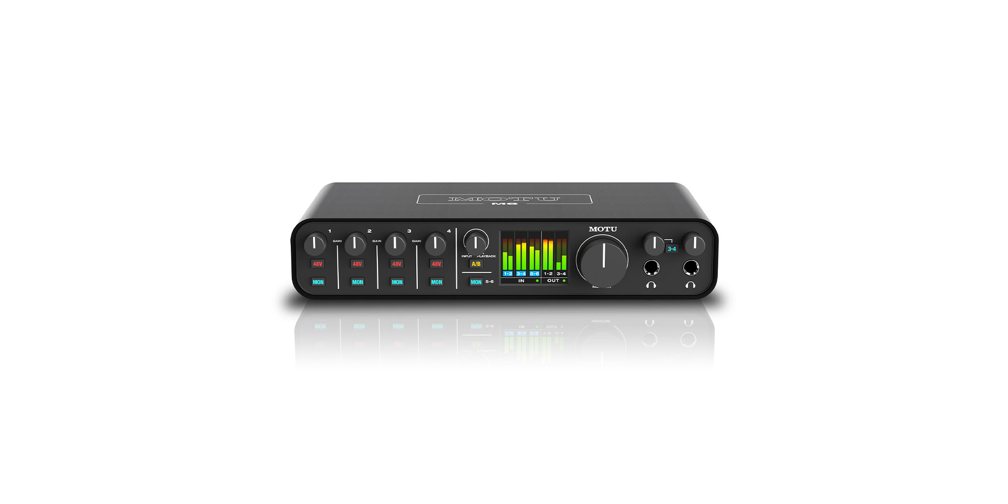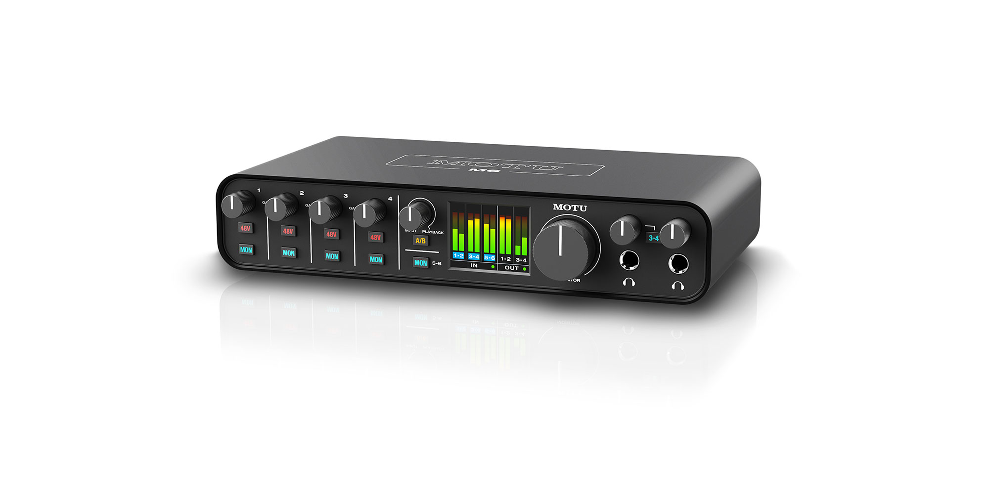 The M6 is a 6-in/4-out USB-C audio interface for Mac, Windows and iOS that offers best-in-class audio quality, best-in-class speed (ultra-low latency) and best-in-class metering with a full-color LCD. Record vocals, instruments or other audio sources quickly and easily. The M6 includes MOTU Performer Lite and Ableton Live Lite production software, 100+ instruments, dozens of plug-ins, and over 6 GB of loops and samples to start making music right away. Additional features include four mic/line/hi-Z instrument XLR combo inputs, individual preamp gain and 48V phantom power, two balanced 1/4-inch line inputs, one-touch hardware monitoring for all inputs, support for stereo monitoring, mix knob for balancing live input with computer playback, four balanced 1/4-inch DC-coupled outputs, A/B switch for comparing a mix on two different pairs of monitors, two ESS-driven headphone outputs with independent volume control, 3-4 switch for independent headphone monitoring of outputs 3-4 (instead of 1-2), MIDI in/out, driver “loopback” channels for live-streaming and podcasting, USB bus power with power switch (USB C-to-C and C-to-A cables included), and optional DC power adapter for stand-alone operation without a computer.