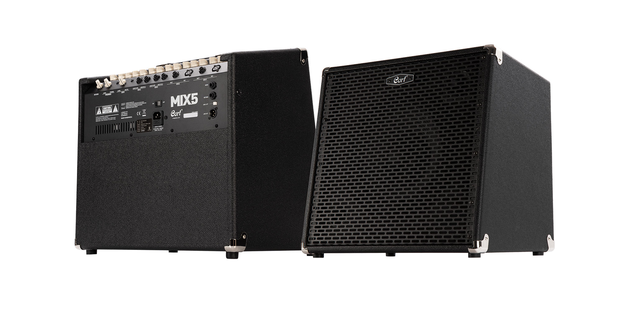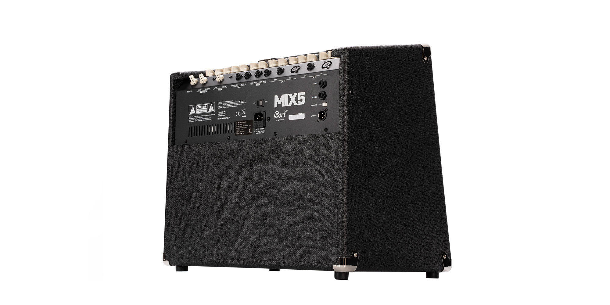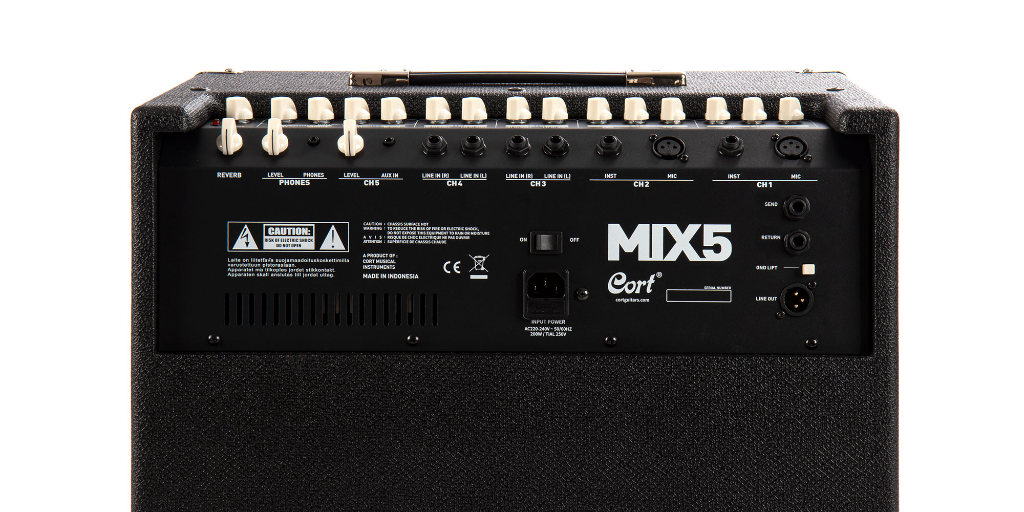 The MIX5 is a 150W multi-purpose combo amplifier that features 5 input channels, 4-band EQ and a built-in reverb that delivers great sound quality and flexibility in a rugged packaging that's perfect for small to medium sized venues and street performances. Vast array of instruments can be connected to MIX5 such as acoustic and electric guitars and basses, electronic drums and drum machines, microphones, keyboards and other sound sources, through variety of input options located on the top-back side of the MIX5 for easier use. And no matter what or how many instruments you plug in, the MIX5's solid internal design and robust external structure, together with custom-designed 12″ speaker and tweeter lets out an optimal sound with clear fidelity.