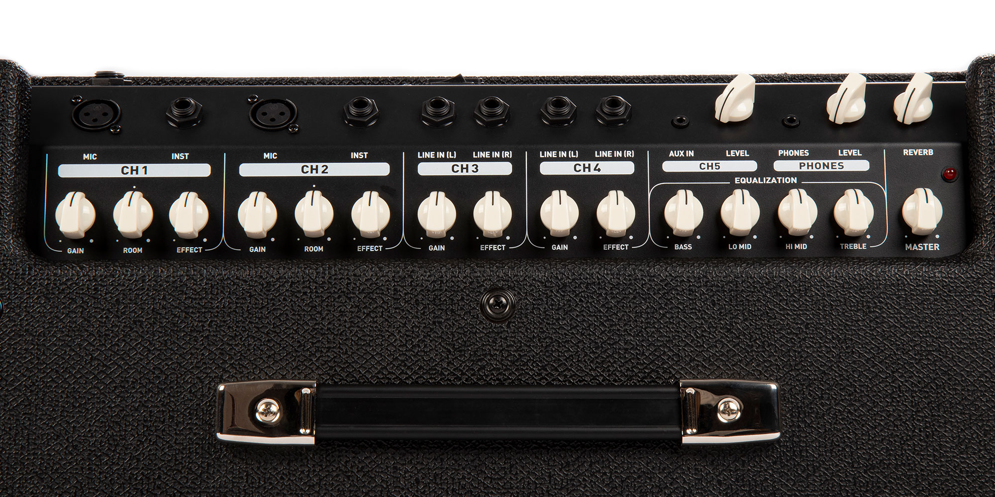 Channels: 5 – 2 x Mic/Instrument, 2 x Line, 1 x Aux In