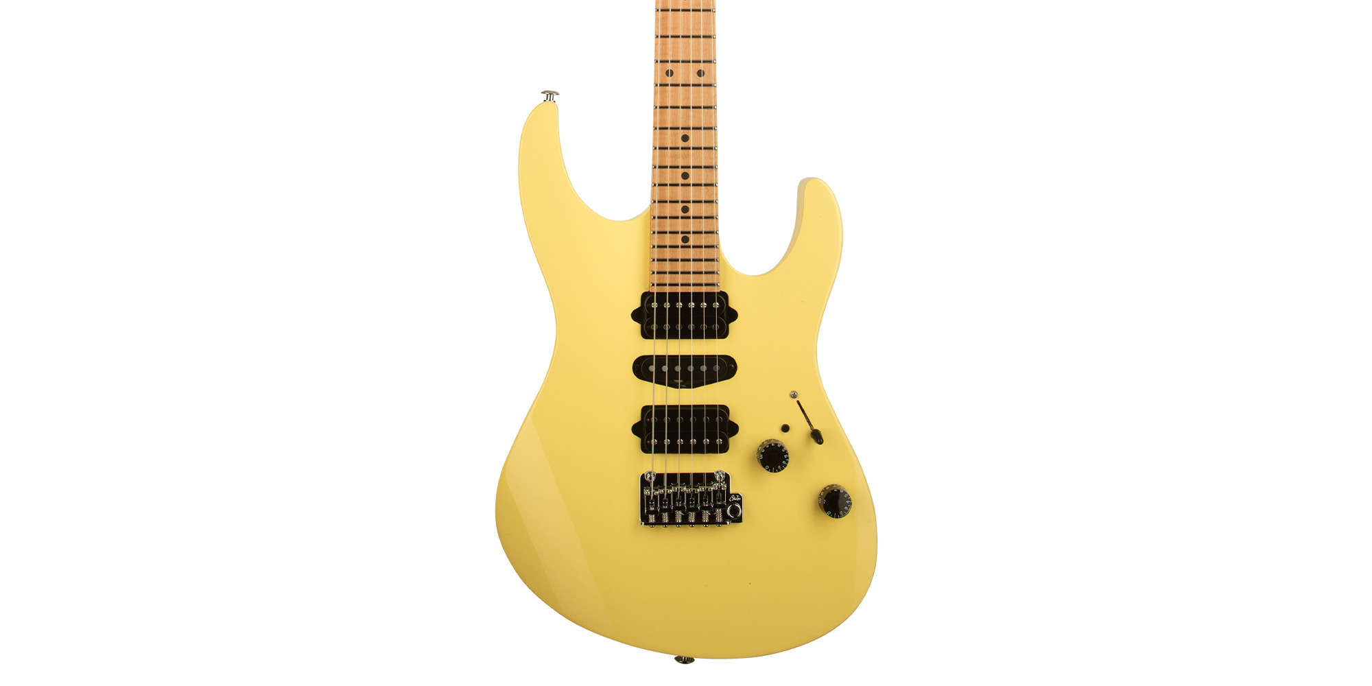 The plain maple neck, designed with an Even C Slim profile and a compound 10”-14” radius, offer effortless playability, while jumbo stainless steel frets ensure long-lasting durability and a smooth playing experience. The satin neck finish adds an extra layer of comfort, making this guitar a dream to play.