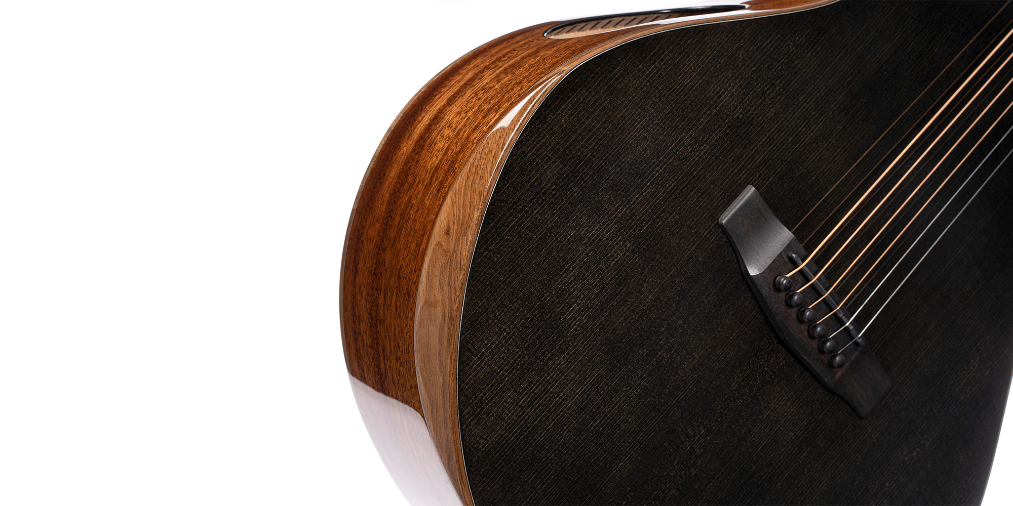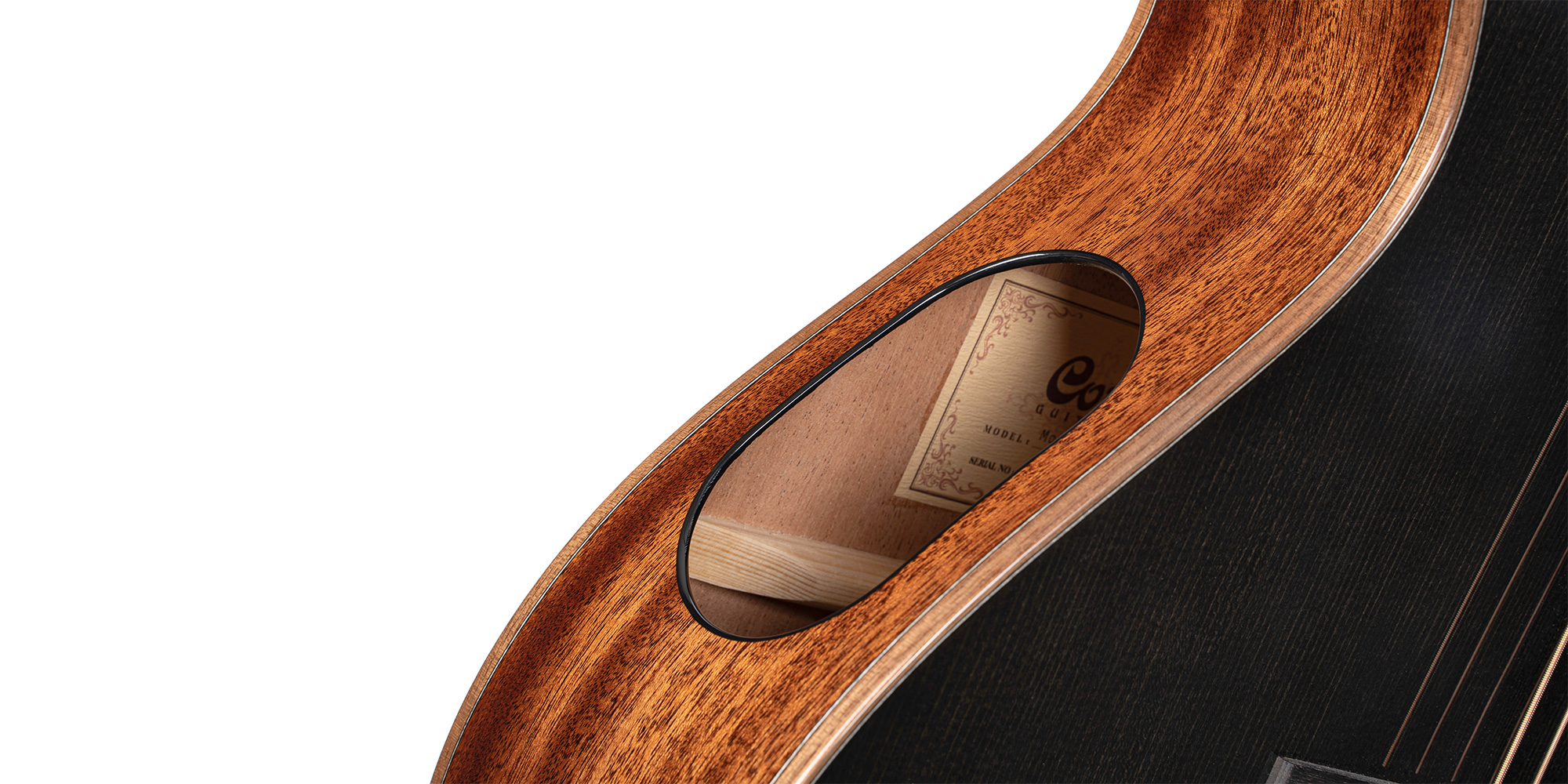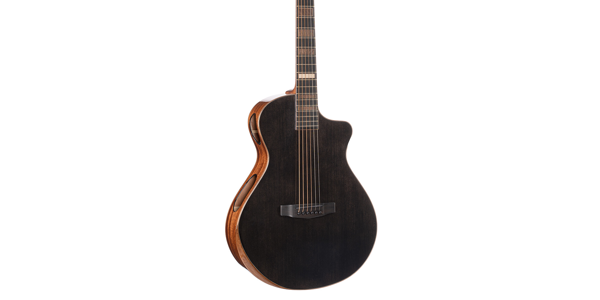 Inspired by the chic and sleek style of the modern jazz era, the Modern Black boasts unique and bold design with a blend of elegance and composure. Its body shape is a complete redesign of the conventional grand concert shape with modified curves that suits the overall styling, while maintaining superb resonance and sound quality, and the dual sound ports ensure that the sound is audible to both the player and the audience. The addition of the world-renowned Fishman® Matrix Infinity pickup / preamp system provides a clear and transparent tone when plugged in.