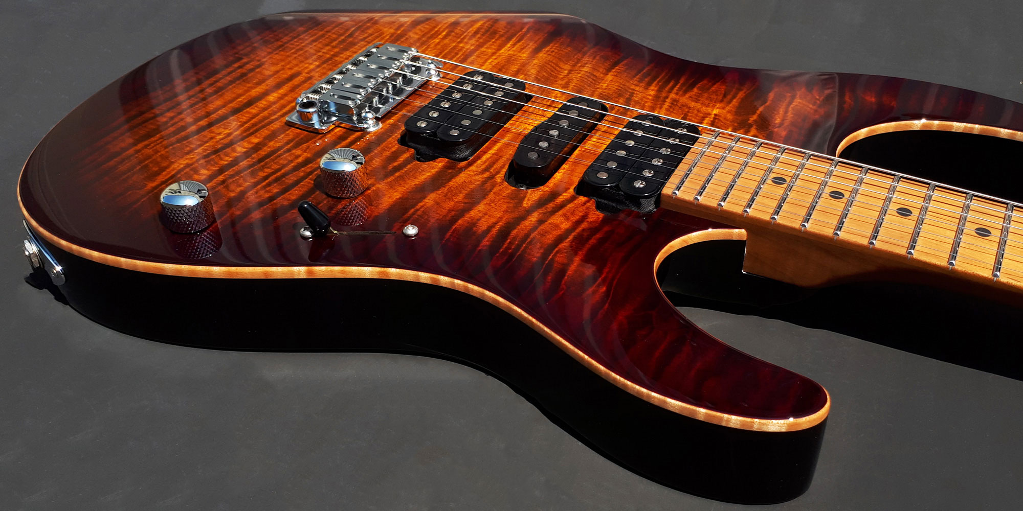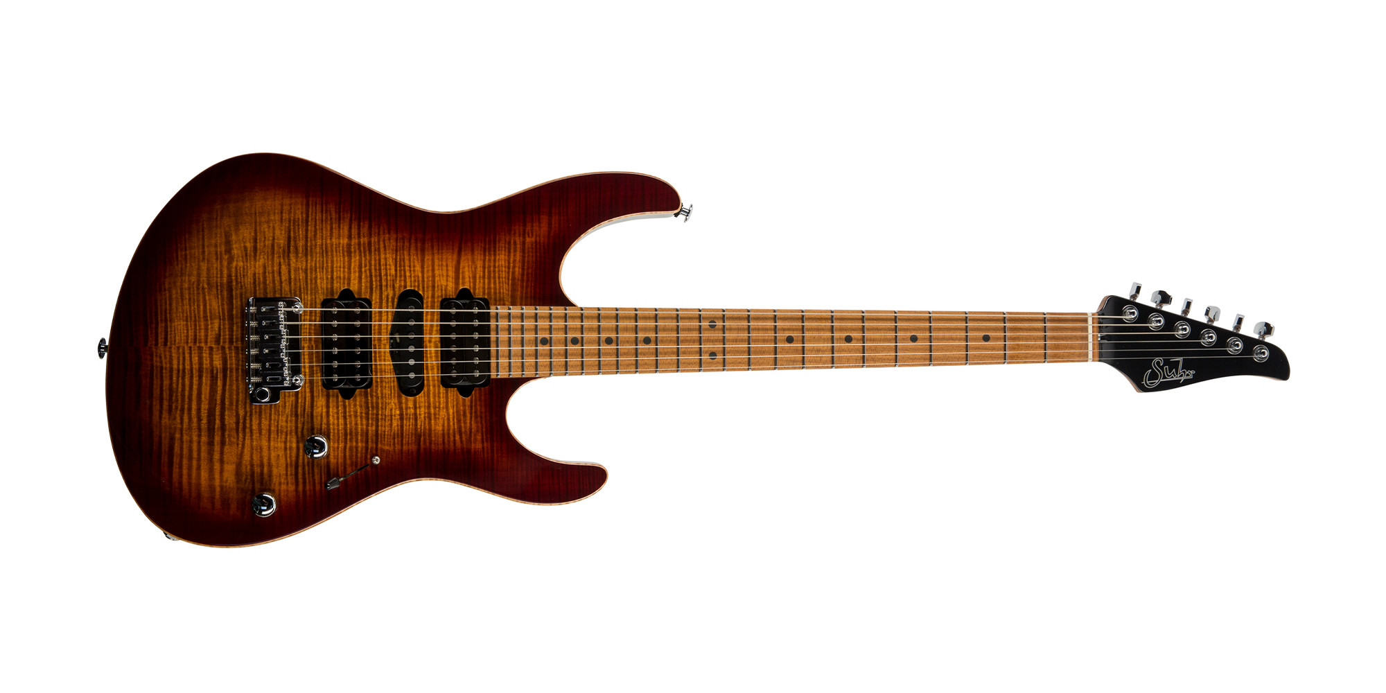 The 2018 Modern Plus features a brand new roasted maple neck with pau ferro or maple fingerboard. The Modern Plus retains many of the original specifications of the Modern Pro including the sleek elliptical neck profile, balanced asymmetrical body, innovative neck heel and stunning flame maple top. Proprietary Suhr locking tuners and the Gotoh 510 tremolo provides superior tuning stability.