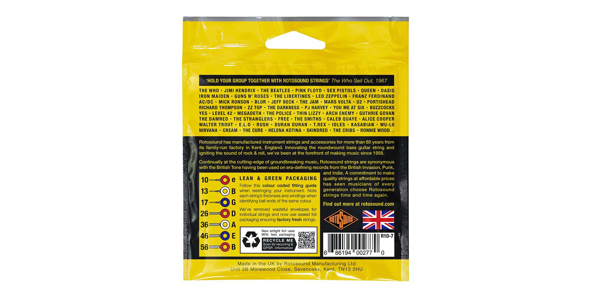 All Rotosound music strings are manufactured in England.
