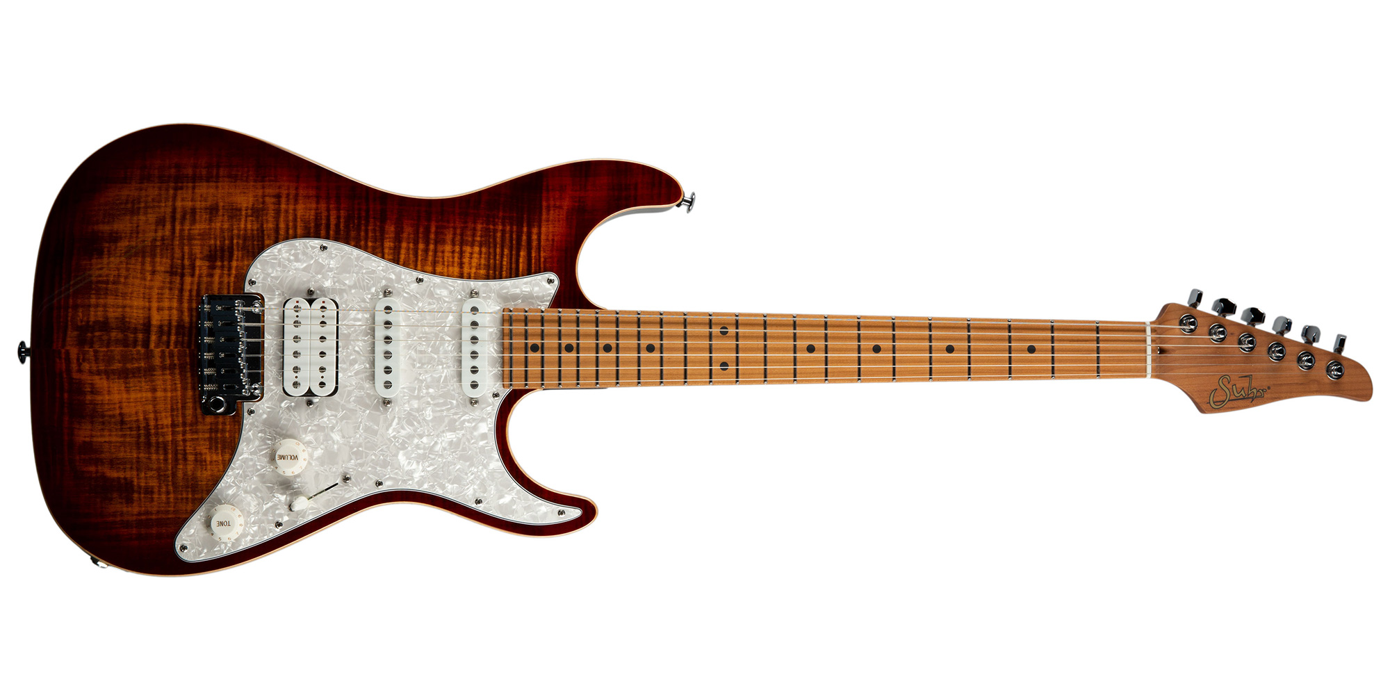 The Suhr Standard is a sleek take on the Classic design. The body is slightly downsized and has a sharper radius on the edges with slightly longer horns to give it a modern, yet classy look. The Standard is equipped with some of our most popular features including an even C slim neck profile, stainless steel frets, and our proprietary SSCII hum cancelling system. The Standard Plus is designed to inspire. From the moment you pick it up, the Standard Plus comes alive in your hands. The scraped binding, white pearl pickguard, crisp body contours and side input jack take this popular body shape to new levels of refinement and versatility.