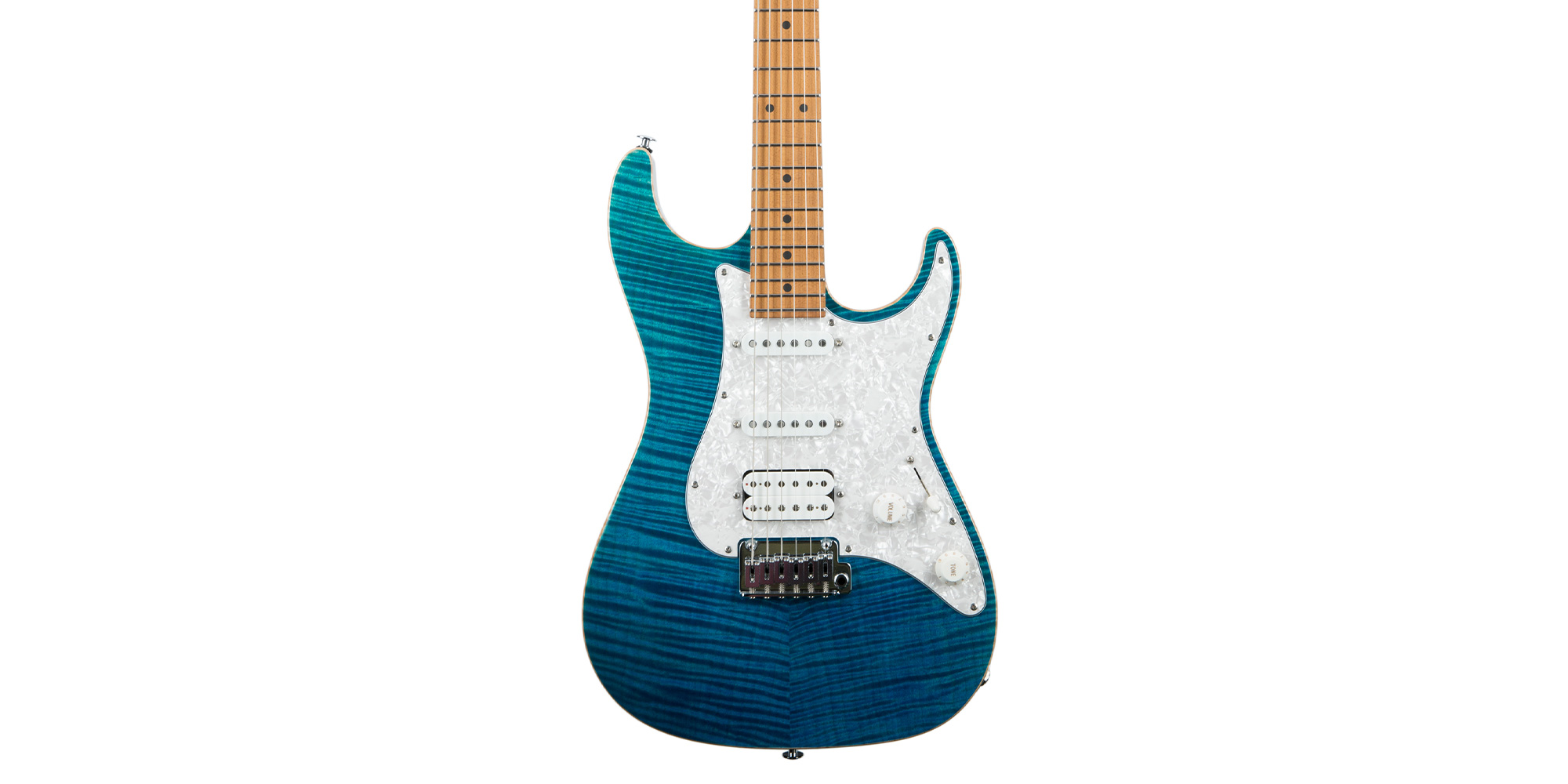 The Suhr Standard is a sleek take on the Classic design. The body is slightly downsized and has a sharper radius on the edges with slightly longer horns to give it a modern, yet classy look. The Standard is equipped with some of our most popular features including an even C slim neck profile, stainless steel frets, and our proprietary SSCII hum cancelling system. The Standard Plus is designed to inspire. From the moment you pick it up, the Standard Plus comes alive in your hands. The scraped binding, white pearl pickguard, crisp body contours and side input jack take this popular body shape to new levels of refinement and versatility.