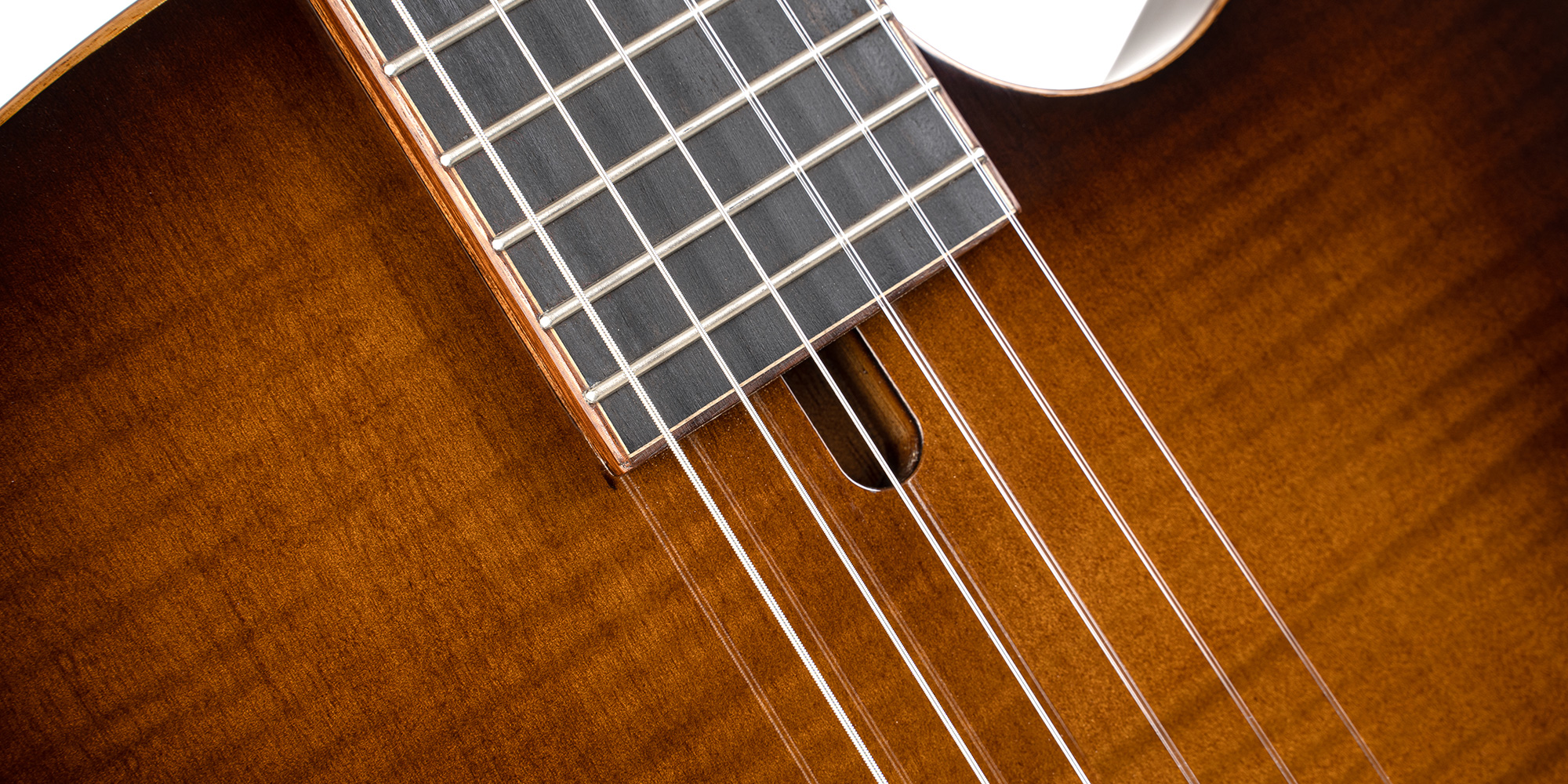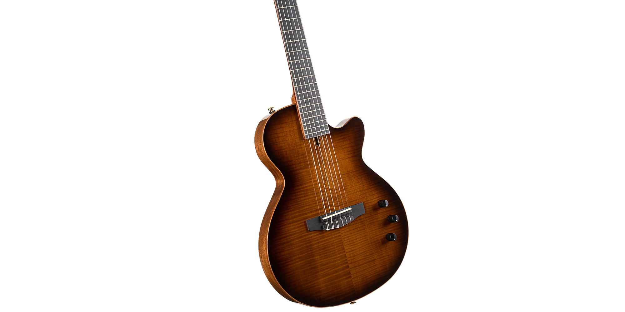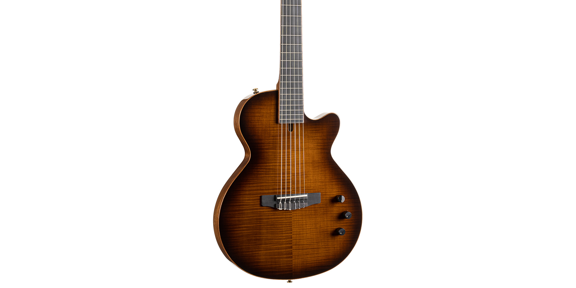 The Sunset Nylectric was engineered to bridge the gap between electric and classical players by merging classical guitar features with a low-profile, more traditional electric instrument body style. The 25.6” scale Sunset Nylectric captures elegance in engineering and classical playability while maintaining superlative build quality.