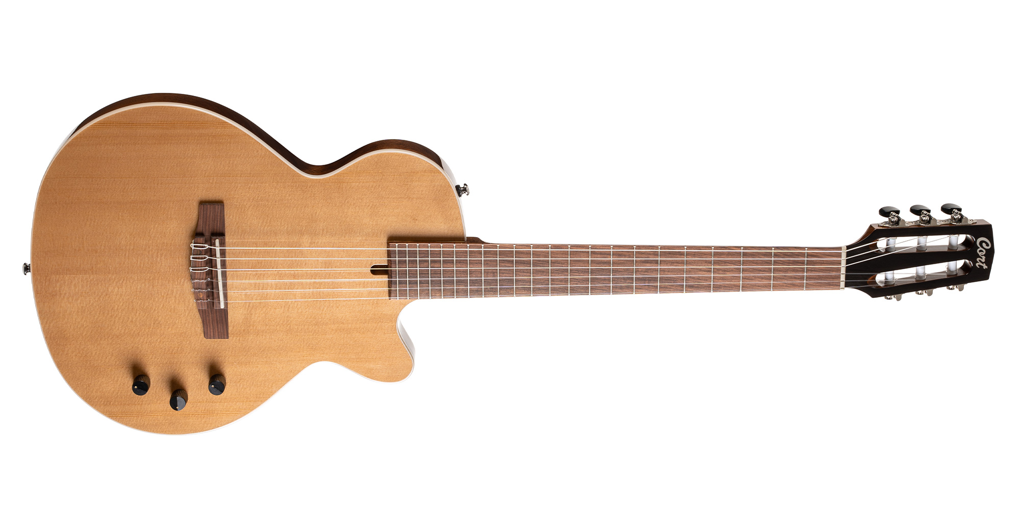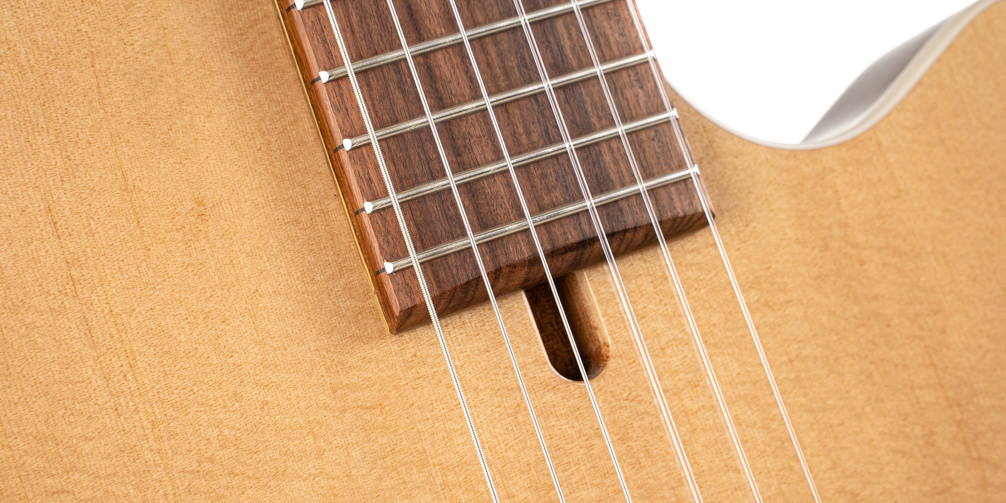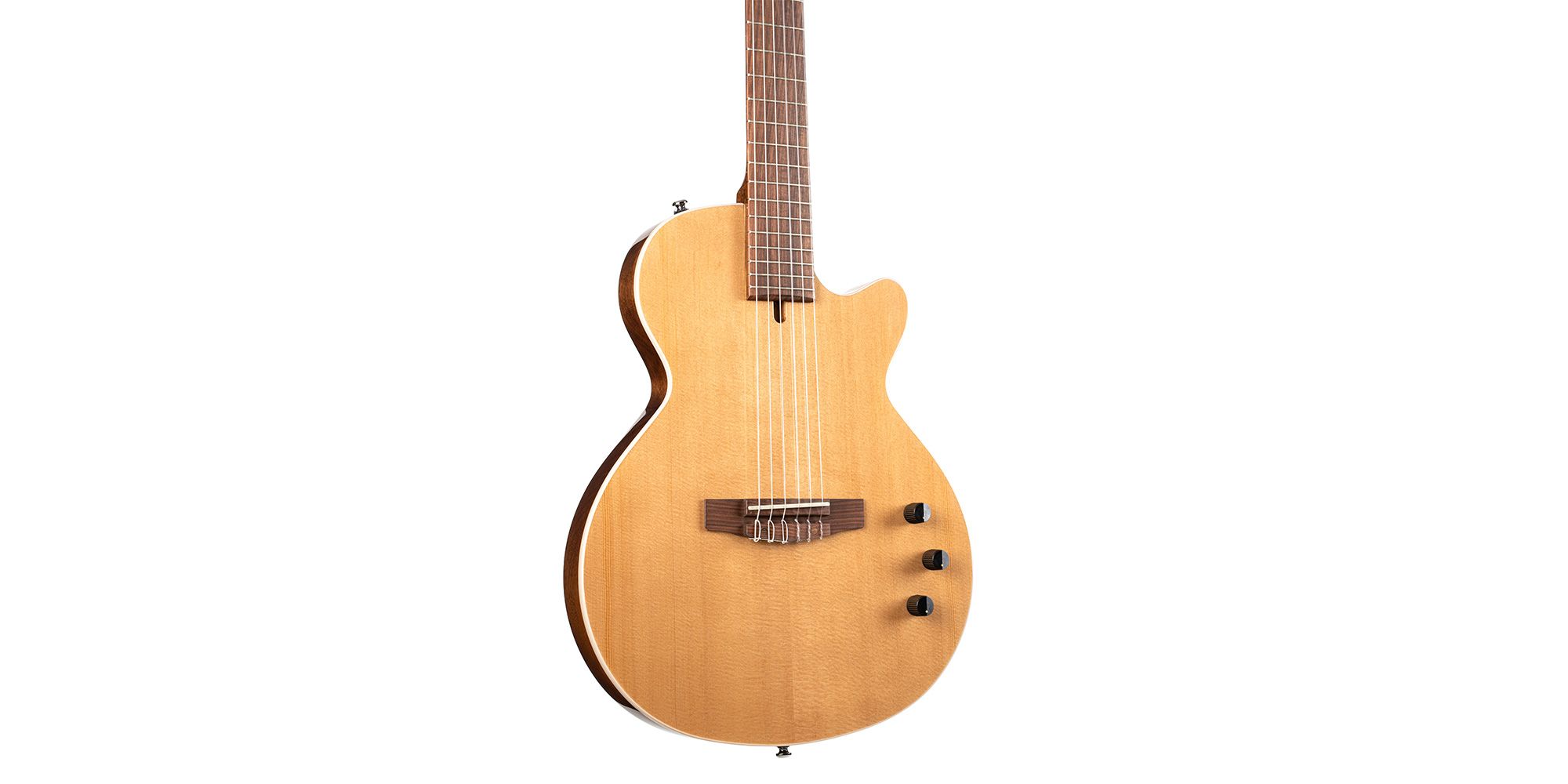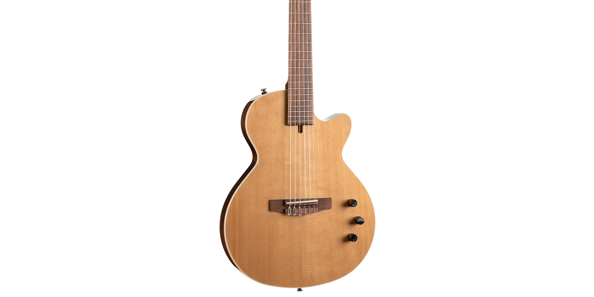 The Sunset Nylectric was engineered to bridge the gap between electric and classical players by merging classical guitar features with a low-profile, more traditional electric instrument body style. The 25.6” scale Sunset Nylectric captures elegance in engineering and classical playability while maintaining superlative build quality.