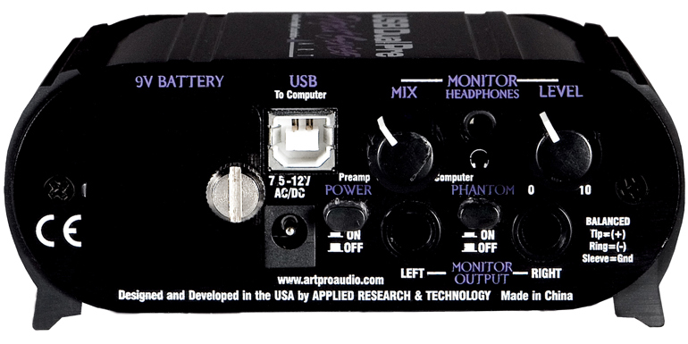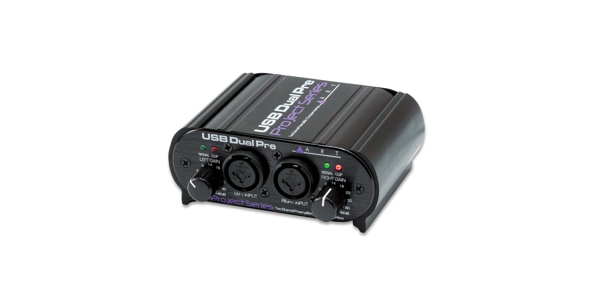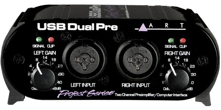 Pre 2 Canali USB The USB Dual Pre is a full-featured high quality dual portable preamplifier and computer interface packed into a compact rugged case. It is designed to work over a wide variety of applications from remote field recording to desktop/studio tracking. Each of the two low noise input channels has up to 48 dB of clean gain with signal present and clip LED indicators. Inputs can be either XLR balanced or 1/4-inch TRS. Each of the 1/4-inch TRS outputs is buffered low impedance balanced. The USB Dual Pre is powered via the USB bus. An internal 9 Volt battery, or optional external 12V power supply (or any combination of USB, battery & power supply) can be used depending on application. When running powered by battery alone, you should expect in excess of 50 hours of operation with phantom power off. Battery life will drop to approximately 20 hours (depending on microphone) when phantom powering is engaged (still enough time to get through an average session). The built-in low noise +48 Volt phantom power supply allows you to power up to 2 microphones as well as the preamplifier when running from any power sources including the USB bus. For monitoring, an 1/8-inch TRS mini headphone jack with level and monitor mix controls on the rear allow for latency free local monitoring of the inputs while recording as well as playback monitoring of the USB bus. The monitor mix is also routed to the 1/4-inch TRS balanced outputs. This lets you use the 1/4-inch outputs as either preamplifier outputs or as the monitor feed to your powered monitors. The USB interface is fully compliant with the USB 1.1 specification and uses USB adaptive mode for playback and USB asynchronous mode for record. It will work with the USB audio device drivers built into Windows 98SE/ME/2000/XP/Vista and Apple OS9.1/OSX computers with native USB support. No special drivers are needed. Features USB Connectivity to Desktop and Laptop Computers Low Noise Fully Balanced XLR and 1/4-inch TRS Combi Inputs Up to 48 dB of Clean Gain n Built-in Low Noise Phantom Power Supply Latency Free Monitoring Mix and Level Controls Independent Channel Gain Controls 1/4-inch TRS Balanced Monitor and 1/8-inch Headphone Monitor Outputs Includes Audacity Recording & Production Software Flexible 3-way Power from USB, External Supply, or 9 Volt Battery Includes USB Cable – Everything Needed To Start Recording Today!