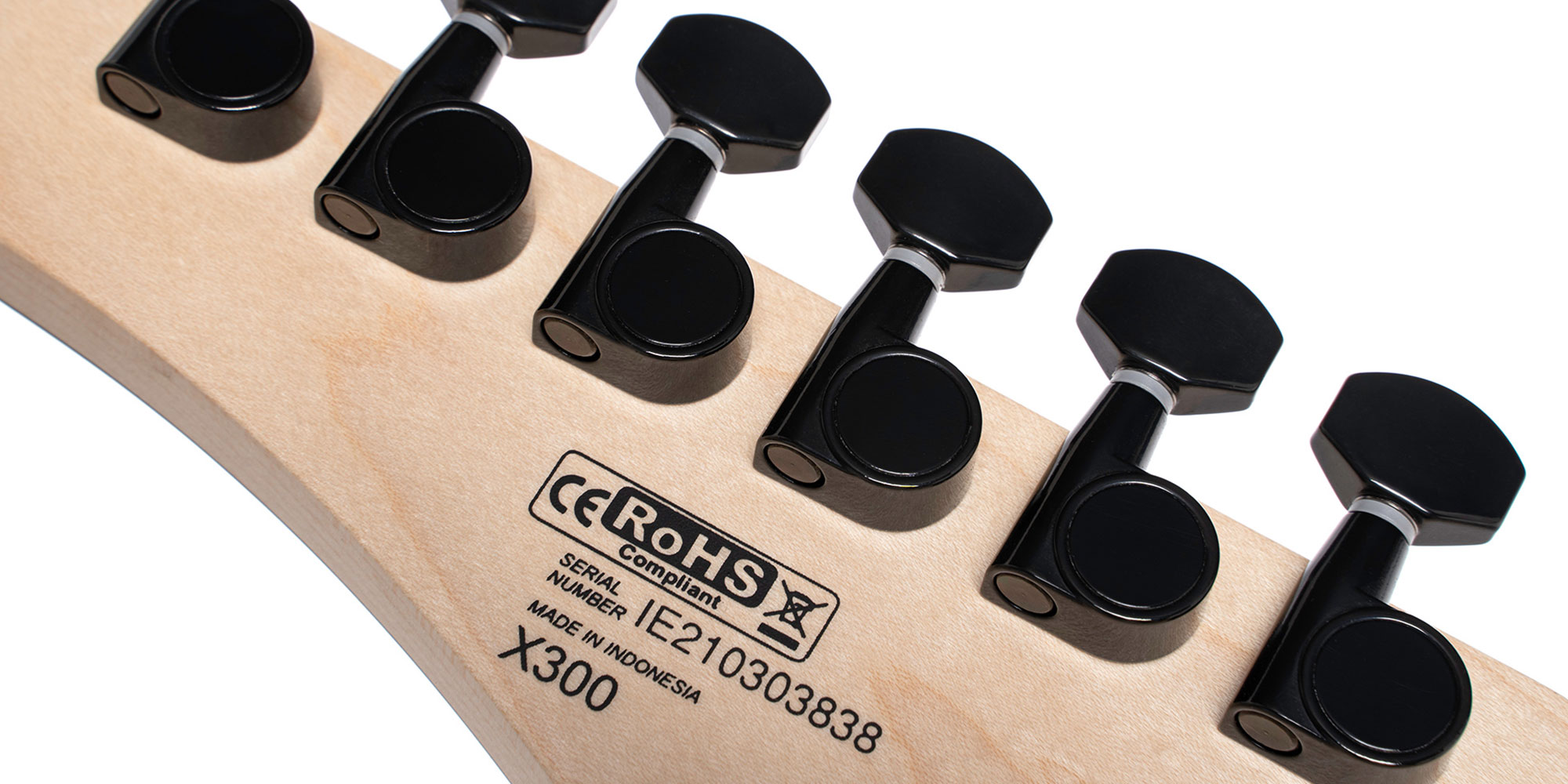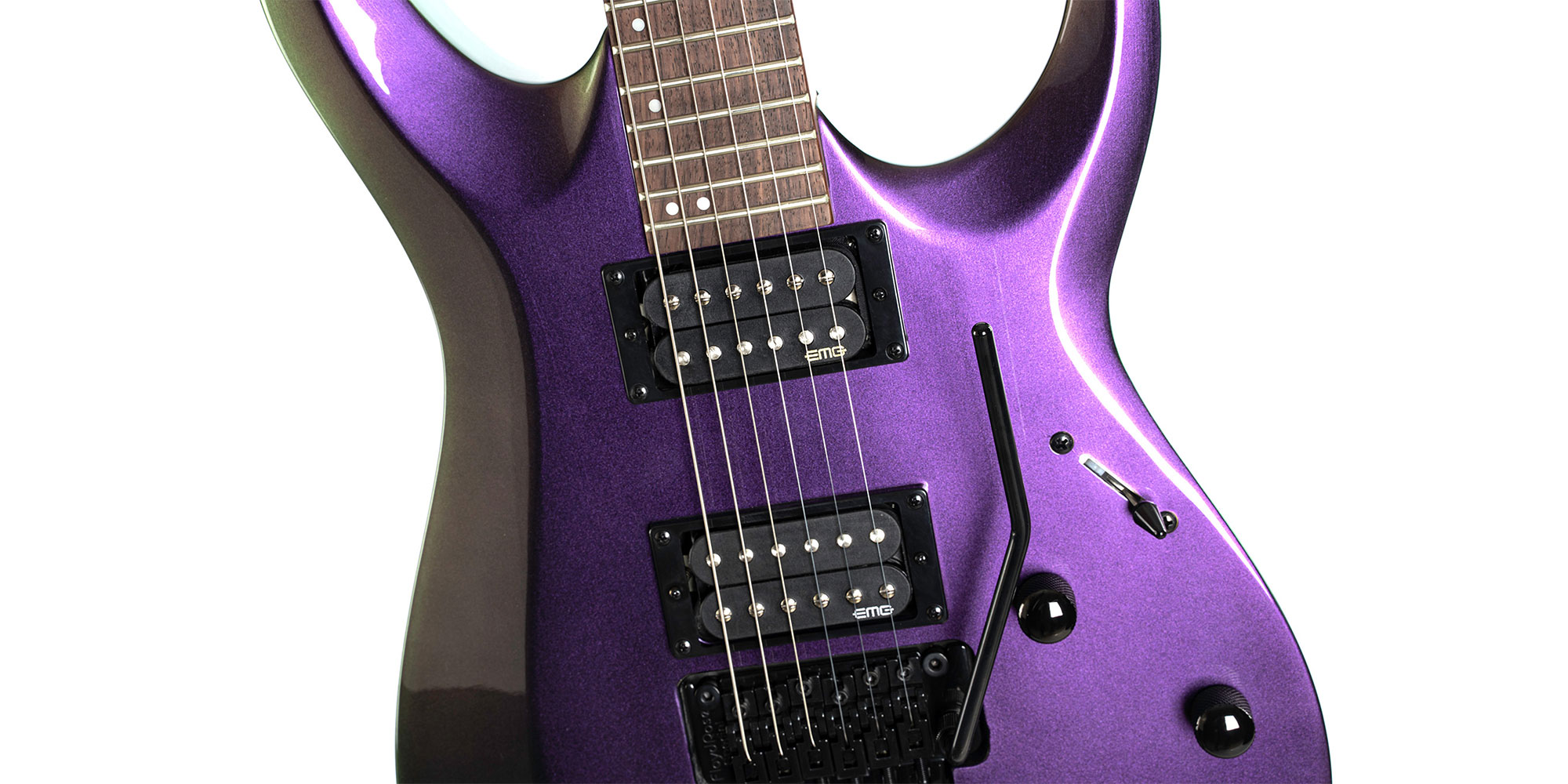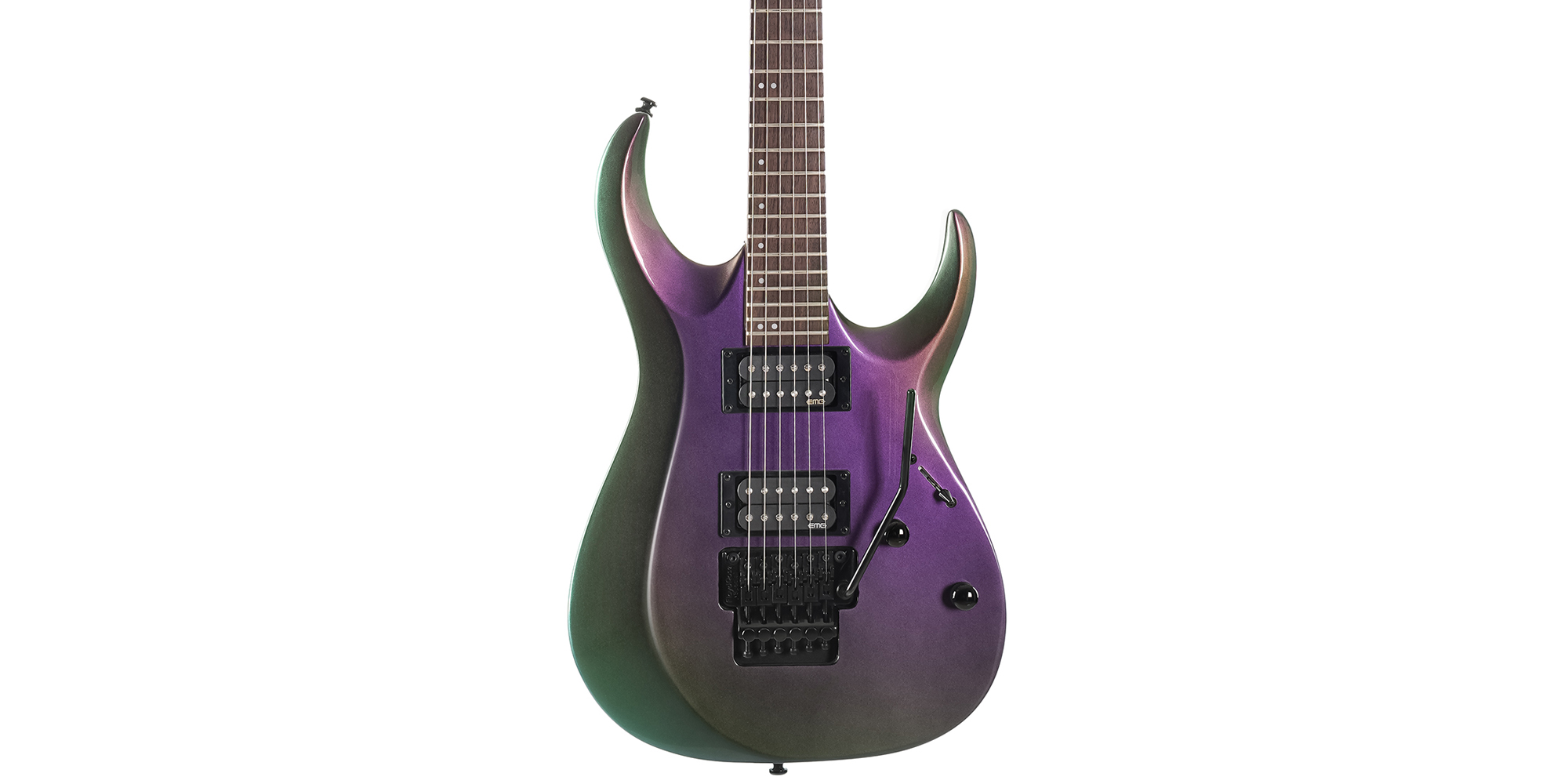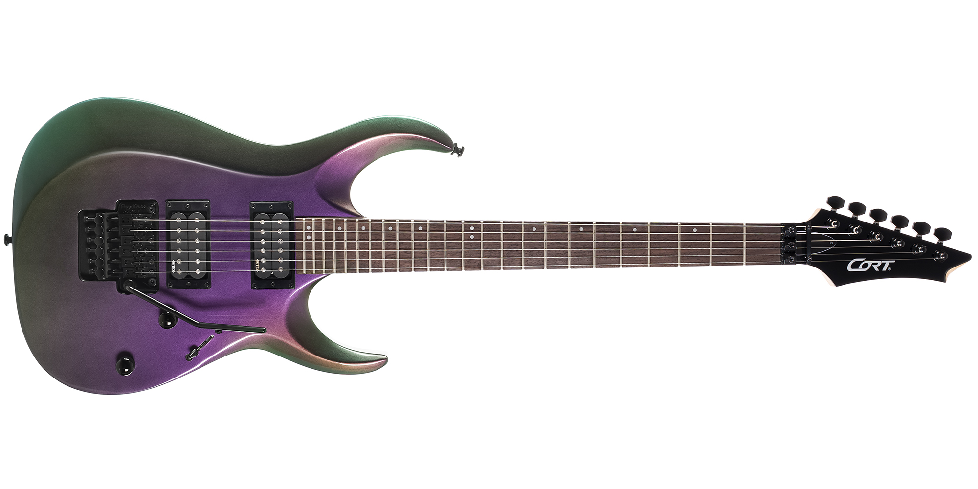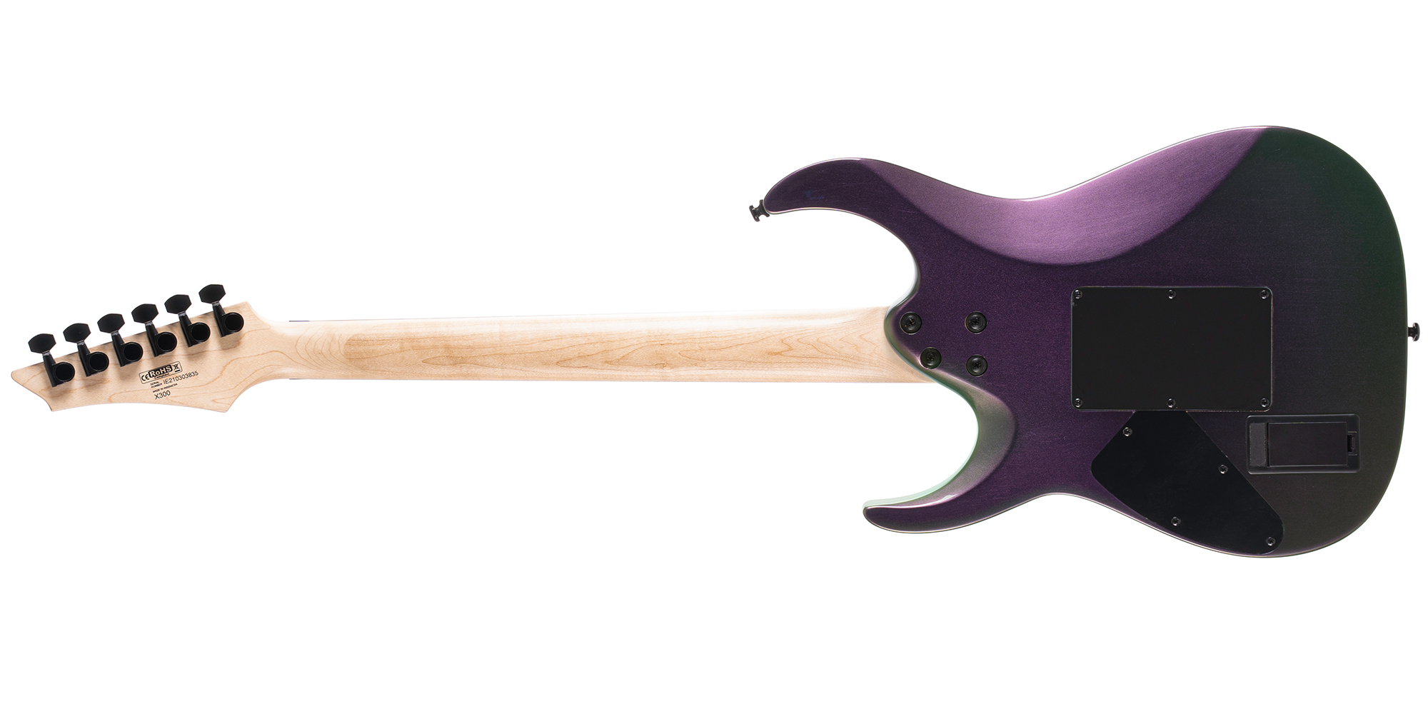 The newly updated X300 features the same premium materials and renowned Cort craftsmanship in two new eye-catching pearlescent colors that changes its hue depending on the viewing angle. Other updates include rosewood fingerboard and black colored headstock that goes well with the mysterious vibe emitted by the chameleon-like color-changing body. The FloydRose® Special tremolo allows for extreme dive-bombing and harmonic squeals while providing perfect tuning stability and the EMG® RetroActive Hot 70 pickups deliver plenty of output with classic warm-sounding character.