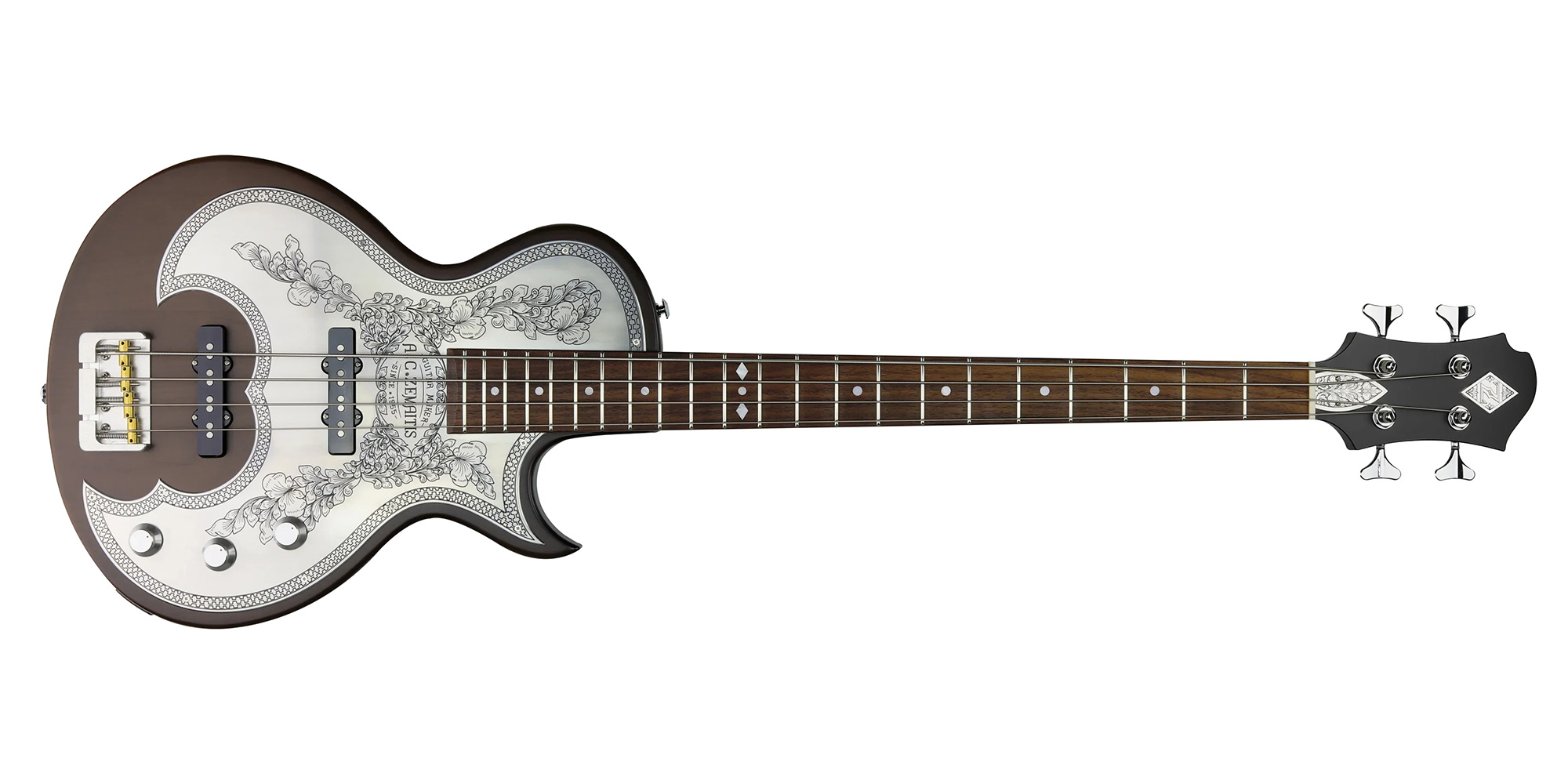 Dotato di ponte HIPSHOT® FB-B. Due controlli di volume ed un master tone consentono un'enorme gamma di tessiture sonore, pur mantenendo l'eleganza e la semplicità che ci si aspetta da Zemaitis.