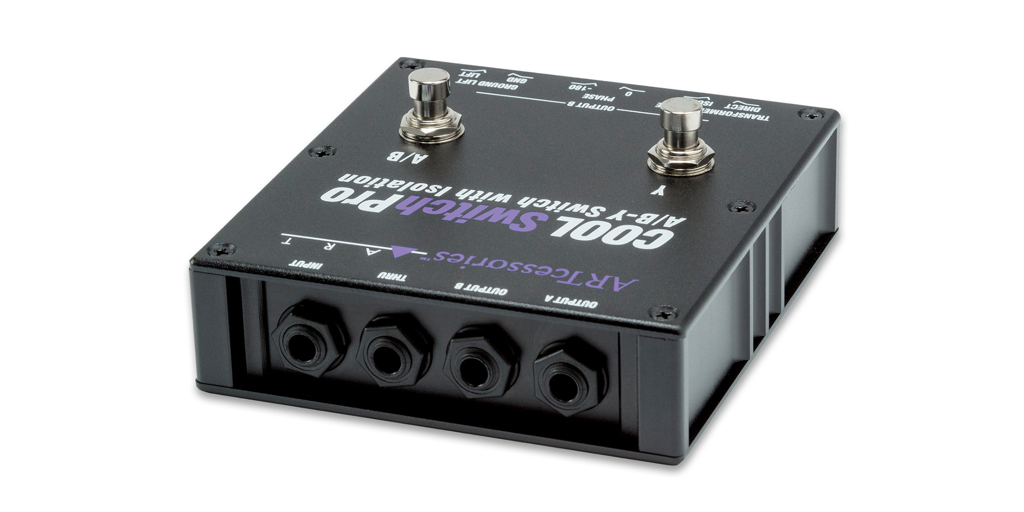 Il COOLSWITCHPRO è uno switch a pedale Y A/B true bypass, perfetto per l'utilizzo live in studio. Grazie al case resistente, al comodo footswitch e all'uscita thru, è possibile inserirlo nel proprio rig utilizzandolo anche con accordatore o in catena con altri pedali.
