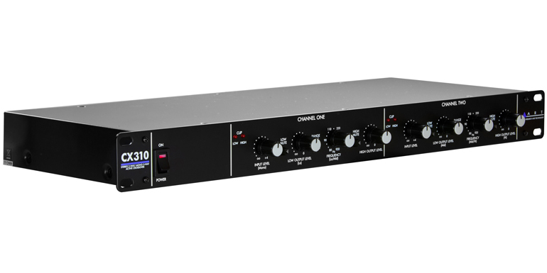 Progettato per applicazioni live e installazioni fisse, il CX310 è un crossover analogico di precisione a 2-vie stereo/3-vie mono equipaggiato con filtri Linkwitz-Riley del 4° ordine a 24 dB/ottava a stato variabile. I filtri Linkwitz-Riley del 4° ordine garantiscono in uscita il perfetto allineamento di fase a tutte le frequenze, prerogativa che assicura la corretta sovrapposizione, nella regione di crossover, delle sorgenti comuni trasdotte dai driver.
