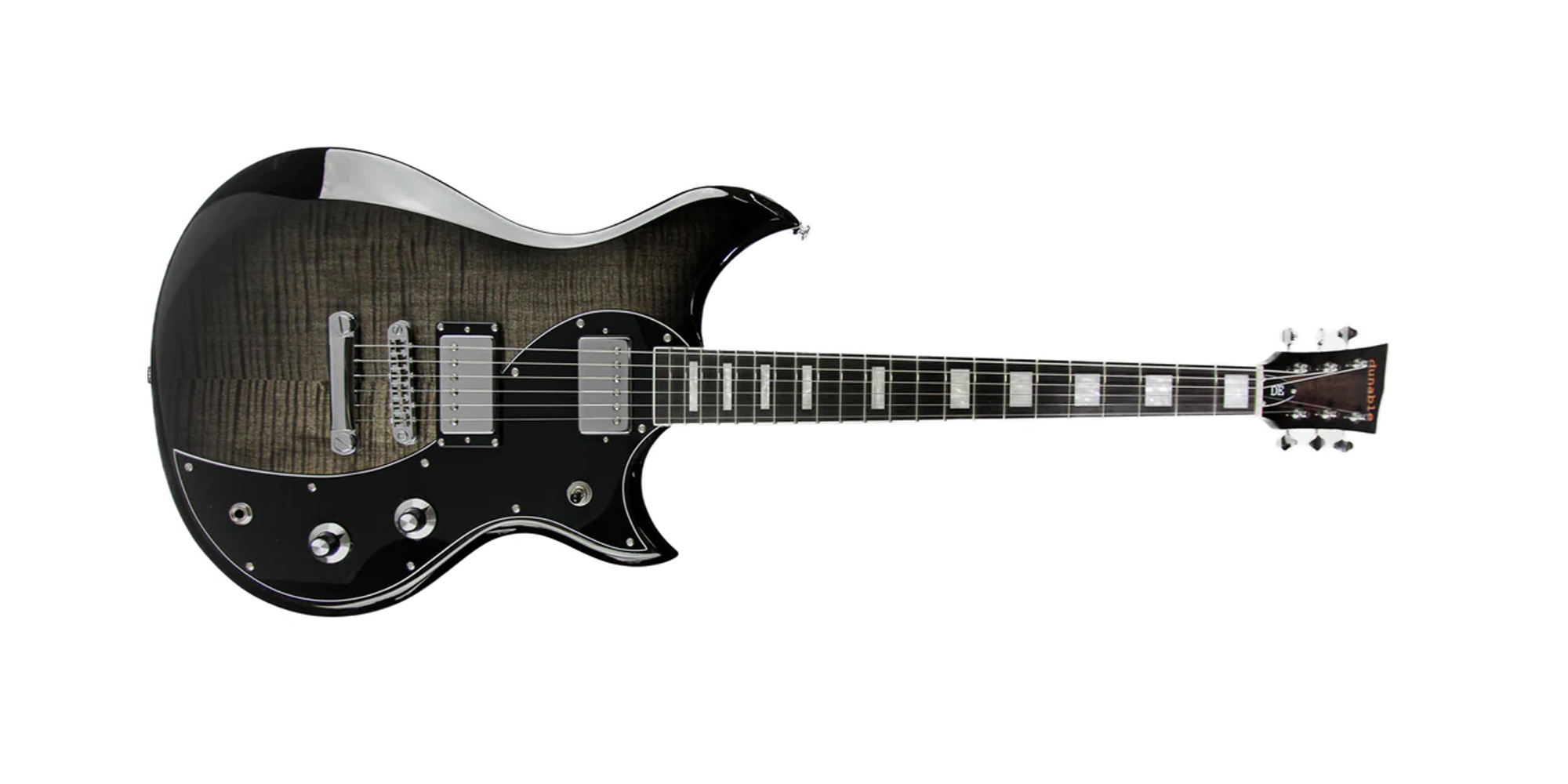 La nuova e migliorata DE Cyclops v2, con top in acero fiammato, ponte T.O.M., tasti jumbo in nickel e tastiera in ebano. Disponibile in una serie di nuove ed esclusive finiture.