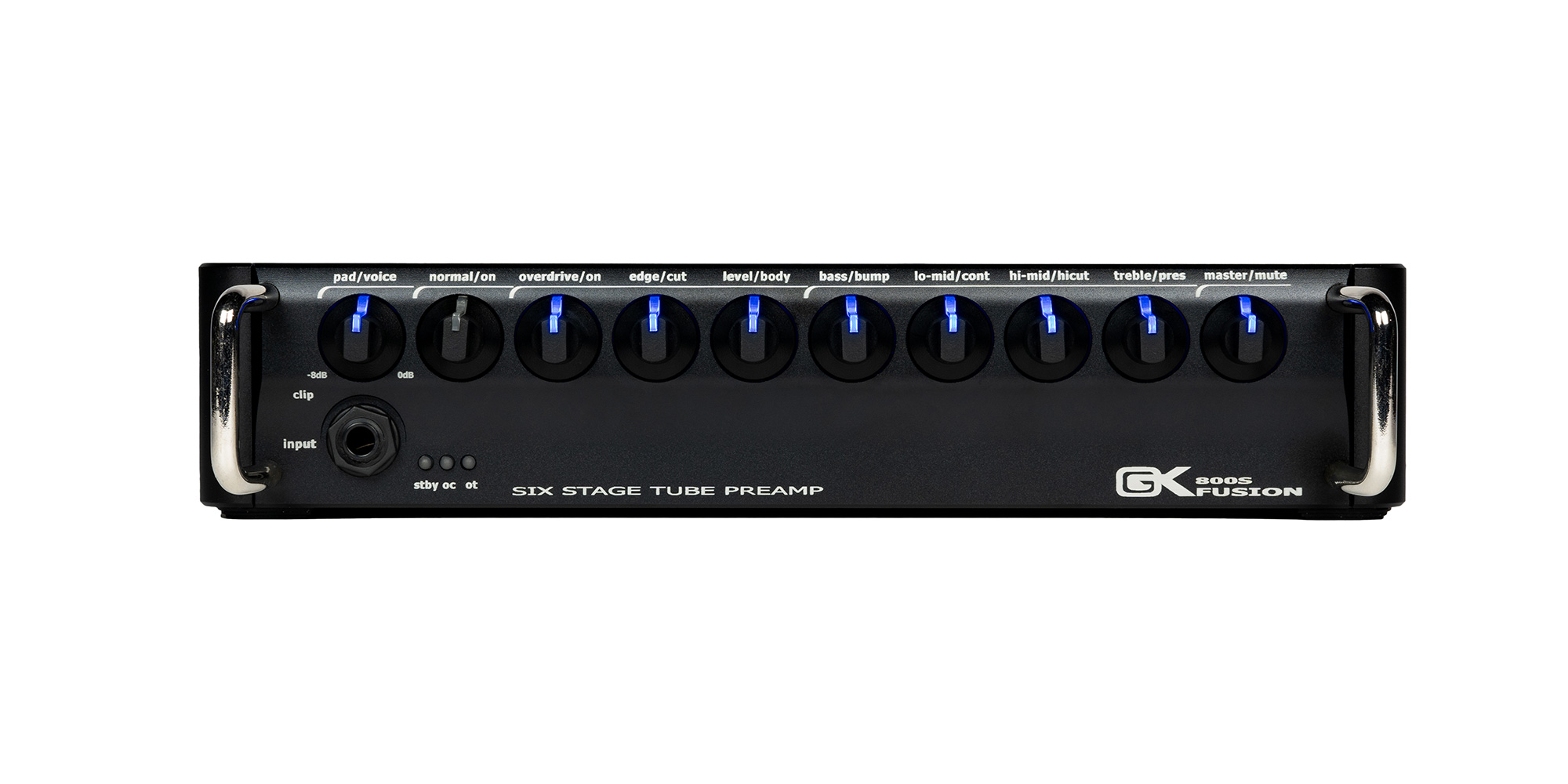 Le testate della serie Fusion S sono le nuovissime testate GK in classe D con preamplificatore a valvole. Il ricco calore delle valvole, combinato con la sezione di potenza rapida e incisiva per cui gli amplificatori per basso GK sono noti, è un'esperienza senza precedenti. Queste testate ad alta potenza incorporano tre valvole 12ax7 nel preamplificatore, di cui una dedicata al canale overdrive, il primo canale overdrive a valvole di GK. Le manopole illuminate aggiungono un ulteriore livello di raffinatezza e design, non solo facilitando la selezione del tono sul palco, ma aggiungendo anche una bella presenza scenica. Ogni manopola illuminata è inoltre attivabile a pressione, con filtri voicing e caratteristiche tonali aggiuntive.