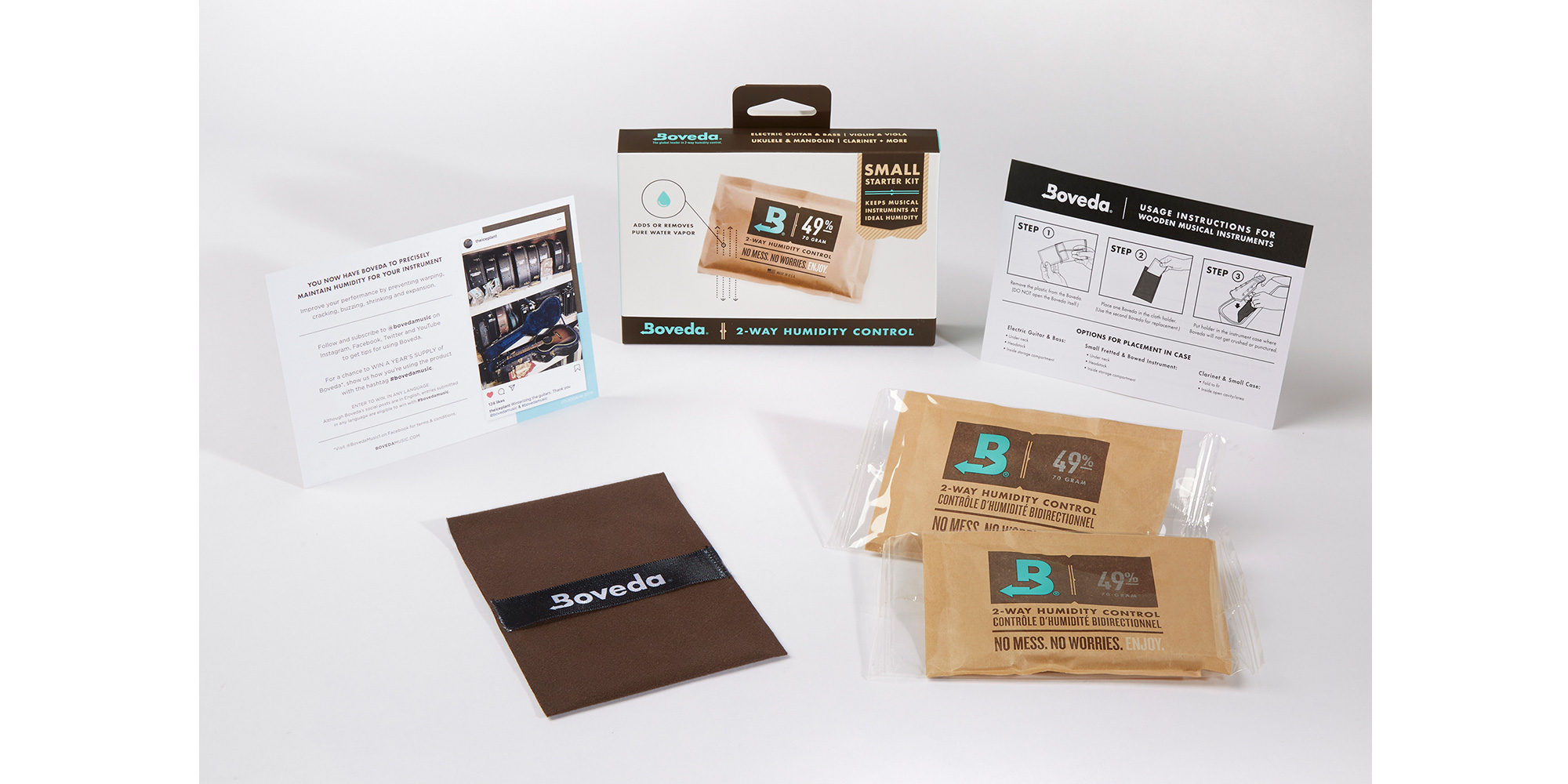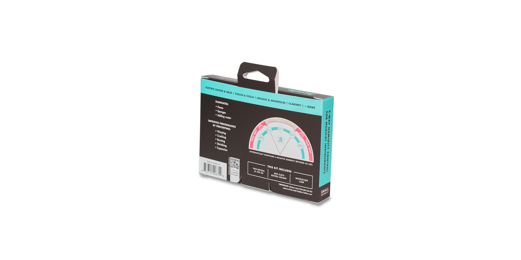 Questo kit mantiene Lo strumento nella zona di umidità ideale per mesi, riducendo al minimo le fluttuazioni di umidità che lo possono danneggiare. Questo kit completo vi permette di iniziare a utilizzare il vostro primo set di umidificatori Boveda con i supporti a tenuta stagna da aggiungere alla vostra gig bag, alla vostra custodia rigida, o direttamente nella buca dello strumento.