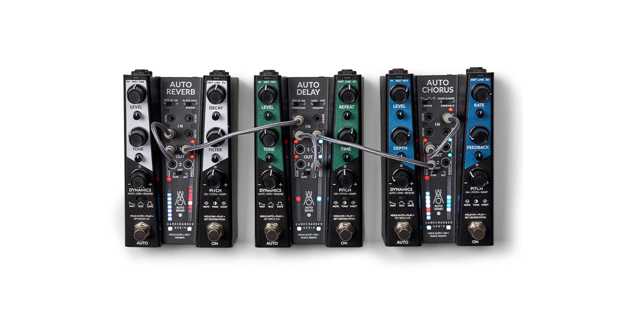 La nuova serie Gamechanger AUTO è una fusione tra il design classico dei pedali e lo straordinario mondo della sintesi modulare. Questa serie non è solo un'evoluzione dell'elaborazione audio, ma una rivisitazione completa di ciò che può essere un pedale effetto.