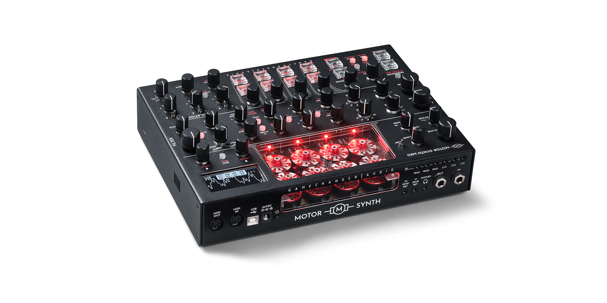 MOTOR Synth si basa su un motore oscillatore unico nel suo genere: si tratta di un sistema di otto elettromotori in grado di cambiare istantaneamente e con precisione la loro velocità di rotazione per produrre note musicali.