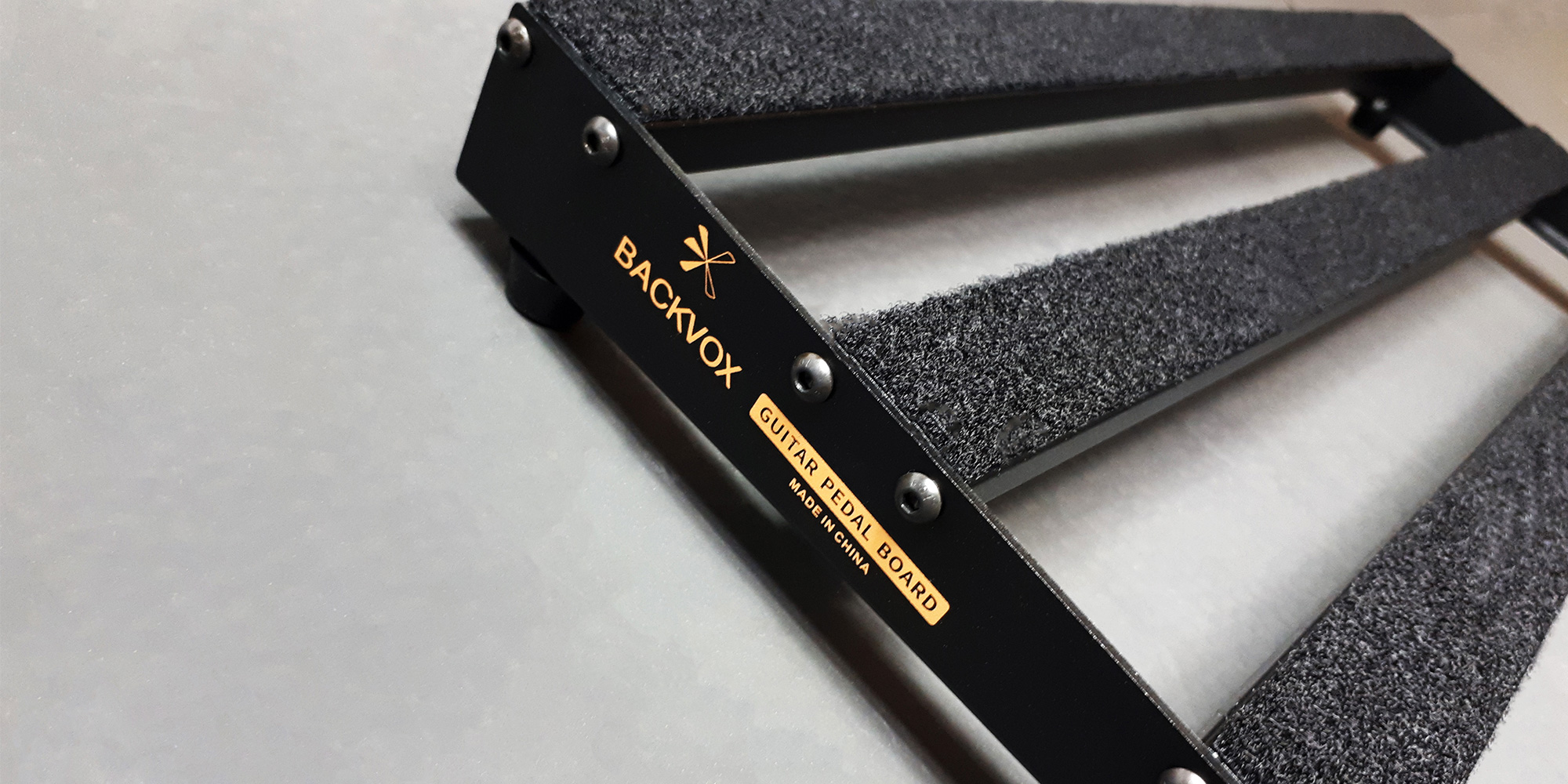Tutte le pedalboard Backvox, vengono fornite con velcro adesivo industriale per fissare i pedali, fascette per riunire i cavi, e piedini in gomma antiscivolo.