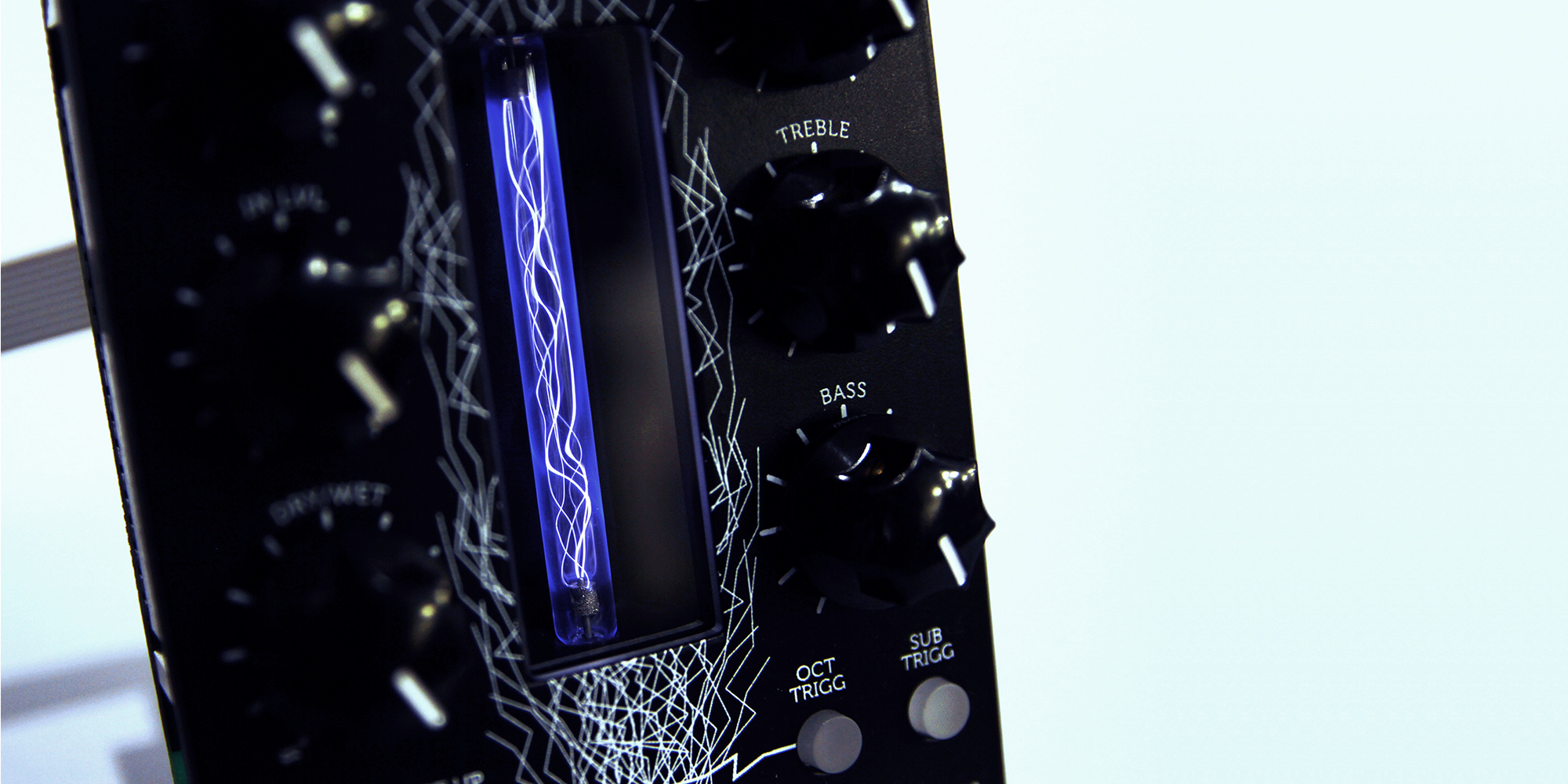 Simile al Plasma Pedal, il PLASMA DRIVE Eurorack aumenta però il segnale audio ad un voltaggio fino a 3000 Volt, e lo trasforma in una serie di scariche continue ad alta tensione in un tubo riempito di xeno. In sostanza, stai suonando un fulmine di elettricità e le scariche elettriche prodotte dal tuo strumento vengono immediatamente riconvertite in un segnale audio analogico. Il risultato: una distorsione rapida, reattiva, ed estremamente pesante con tonnellate di carattere unico!