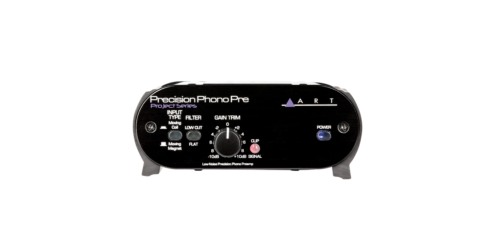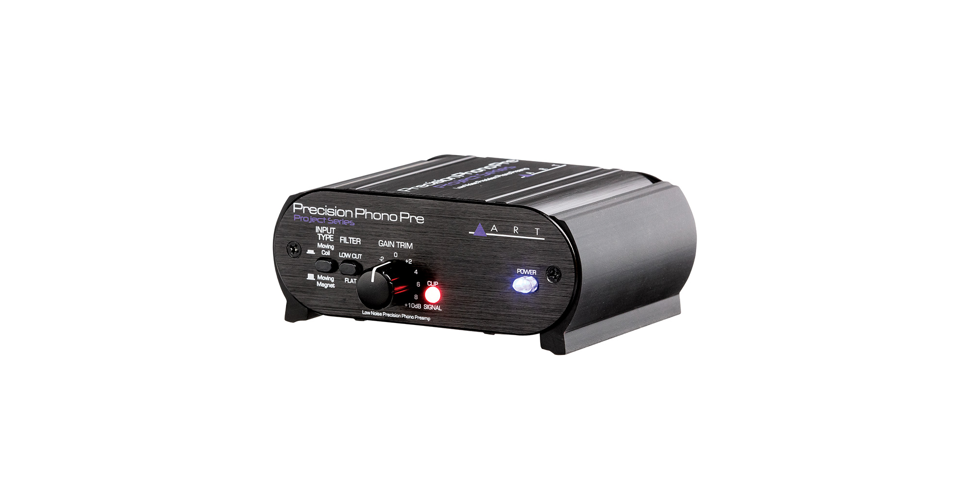 Gli ingressi analogici sul preamplificatore phono di precisione ART Precision Phono sono commutabili tra Moving Magnet e Moving Coil. L'unità cambia sia il guadagno che il caricamento della testina per adattarsi alla testina selezionata. Il controllo del trim del guadagno frontale con il LED di segnale presente/clip permette all'utente di ottimizzare l'uscita per una vasta gamma di cartucce.