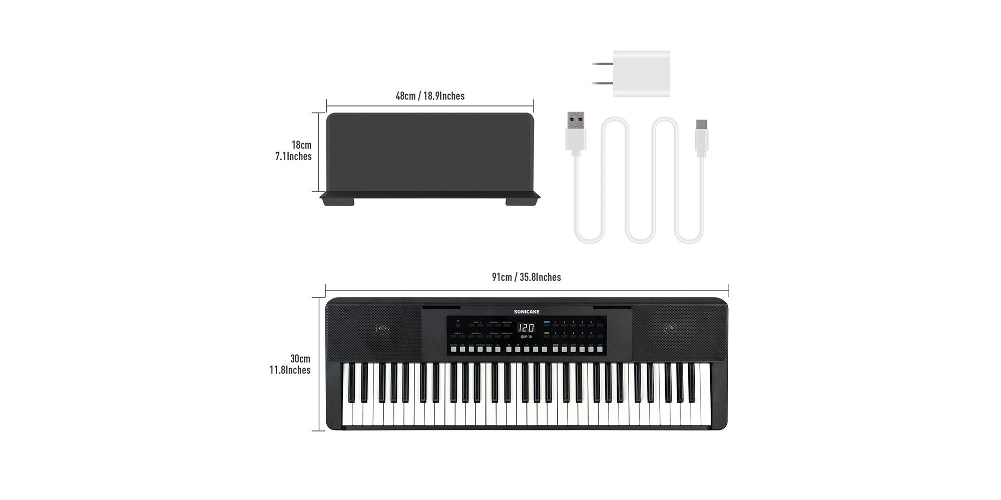 La QKP-10 è una tastiera versatile prodotta da Sonicake, progettata per eccellere nella pratica, nelle performance e nella creazione musicale. Il pannello frontale elenca chiaramente varie funzioni pratiche, consentendo agli utenti di trovare rapidamente e facilmente i toni e gli effetti desiderati, con una curva di apprendimento ridotta. La funzione ritmica accuratamente realizzata, combinata con gli altoparlanti stereo integrati, consente un'esperienza coinvolgente durante le performance e le prove!