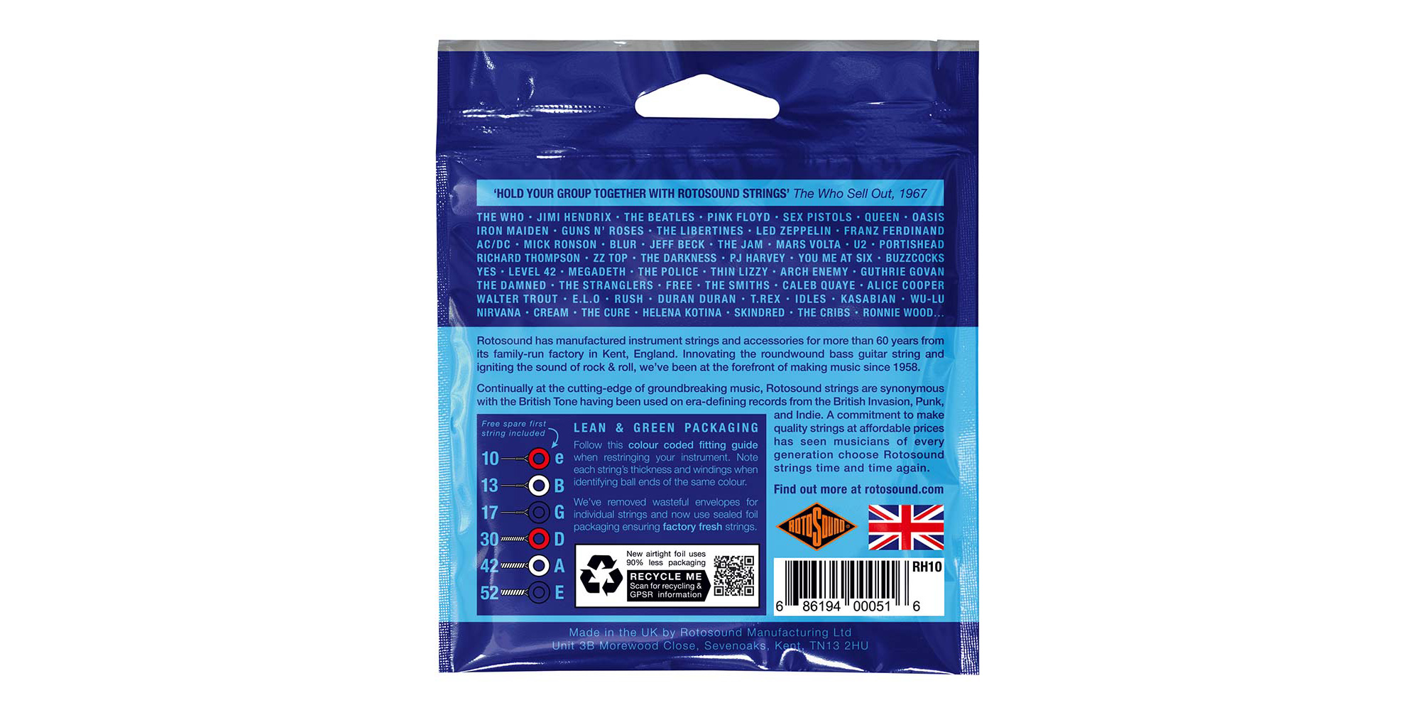 Rotosound ha da poco celebrato 50 anni di attività, in cui ha prodotto il meglio delle corde in acciaio nickelato presenti sul mercato per le 6, 7, 8 e 12 corde.