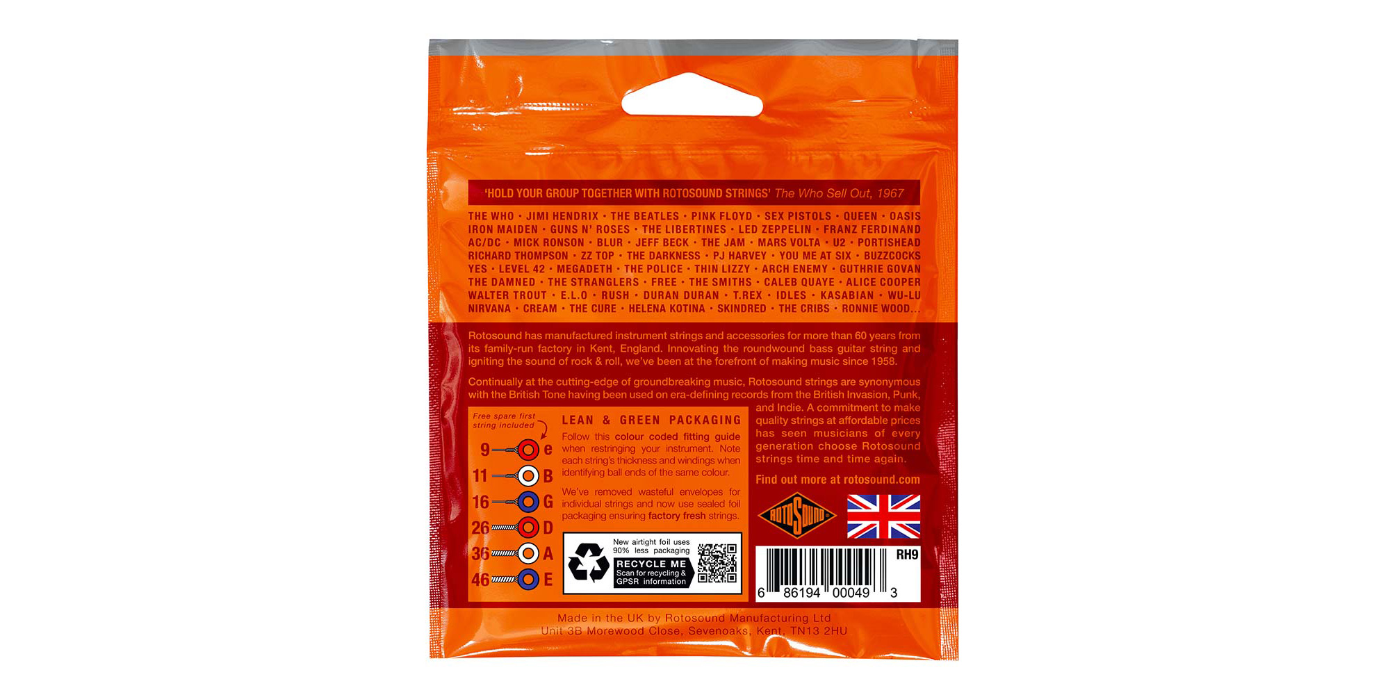 Rotosound ha da poco celebrato 50 anni di attività, in cui ha prodotto il meglio delle corde in acciaio nickelato presenti sul mercato per le 6, 7, 8 e 12 corde.