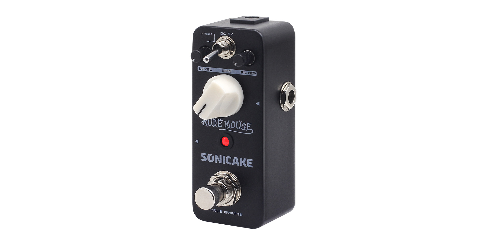 RUDE MOUSE è un pedale distorsore basato sul mitico effetto americano RAT Distortion, che ha influenzato il sound rock di tutti gli anni '80. Il suono dell'underground! Il suo tono distorto è selvaggio e aggressivo. La modalità HOT può potenziare il suono.
