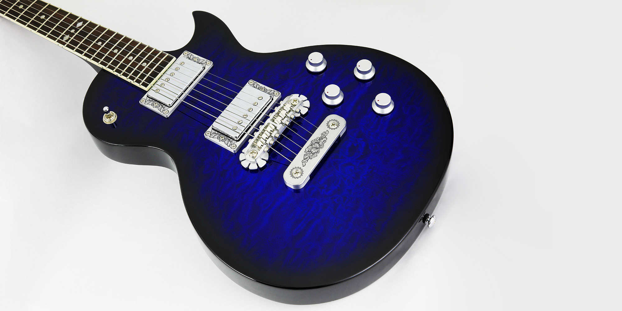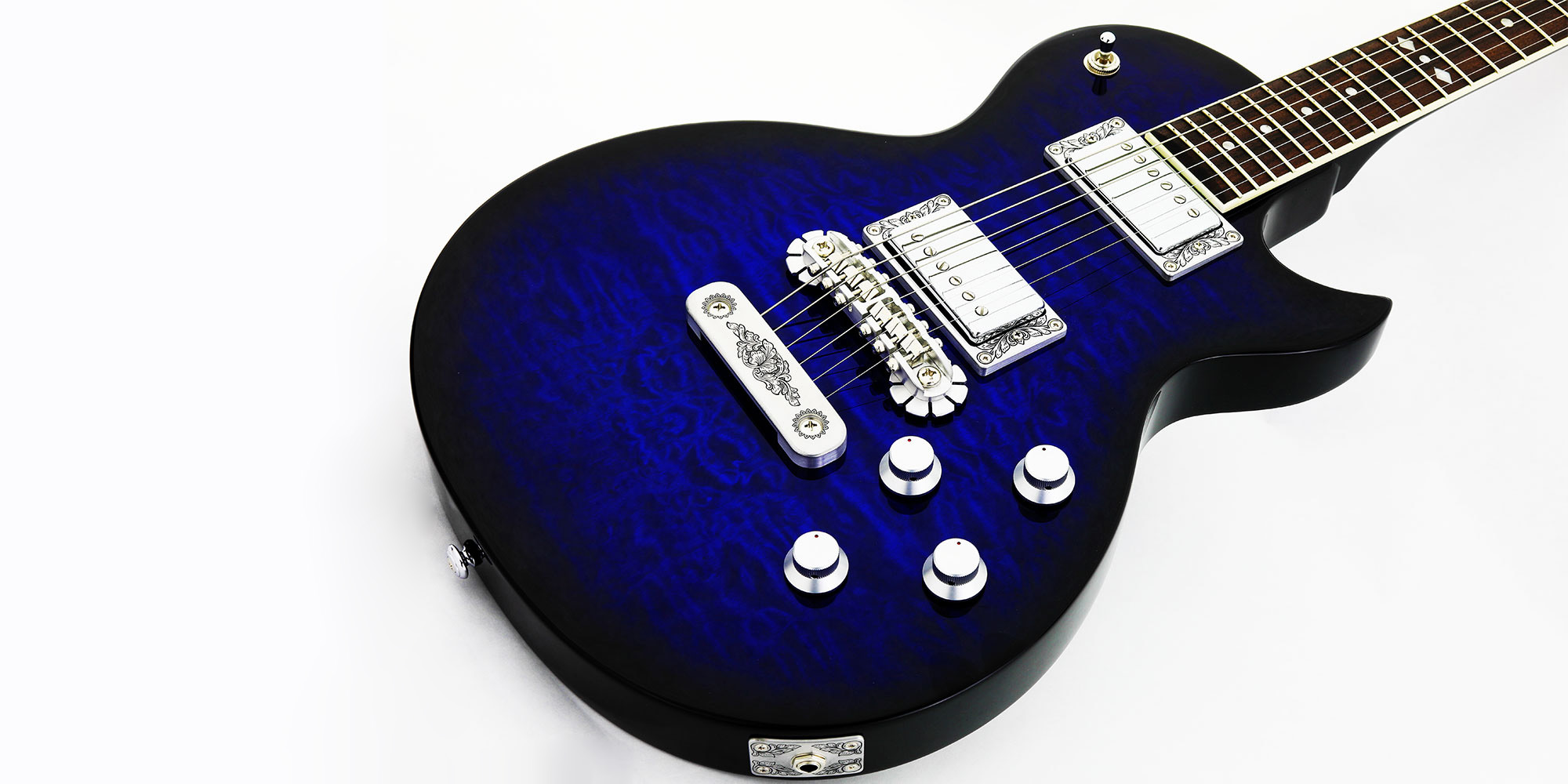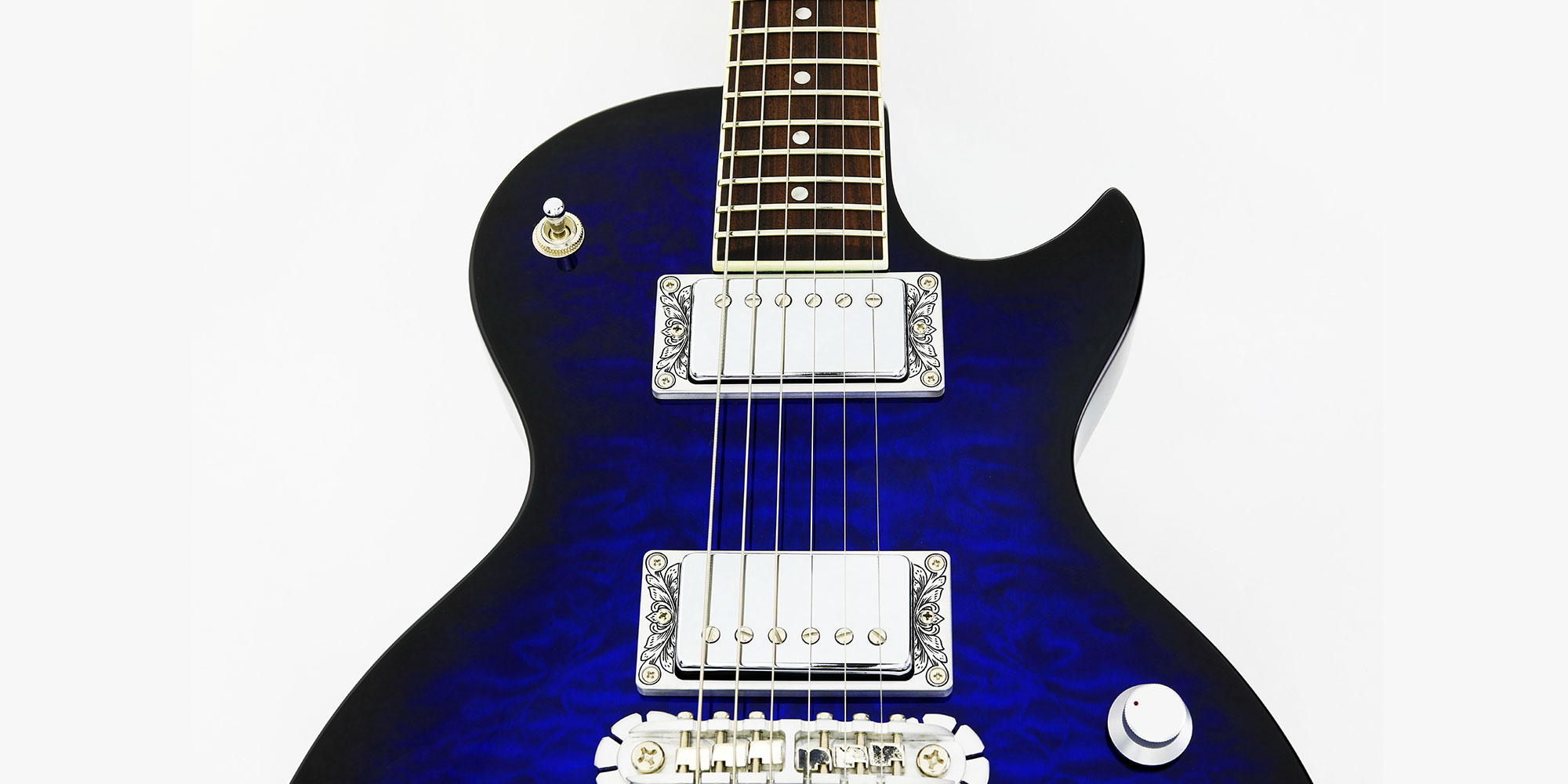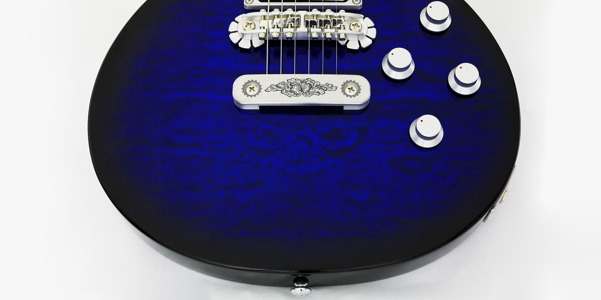 Per noi il suono è la cosa più importante, ma non possiamo dimenticare la bellezza. Abbiamo mescolato un corpo in mogano africano con un manico in acero, una tastiera in pau ferro ed un capotasto in osso per il tono, abbiamo aggiunto un top e una paletta quilted, e ancora meccaniche autobloccanti, un ponte personalizzato e dettagli acidati per completare la Zemaitis “Flair”.