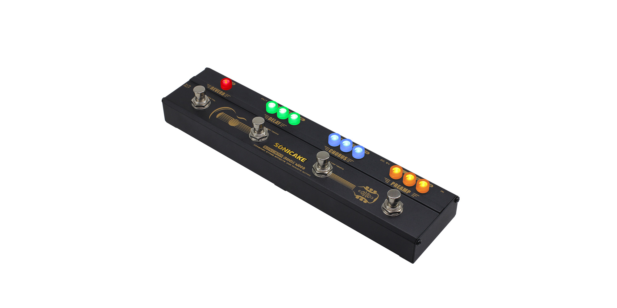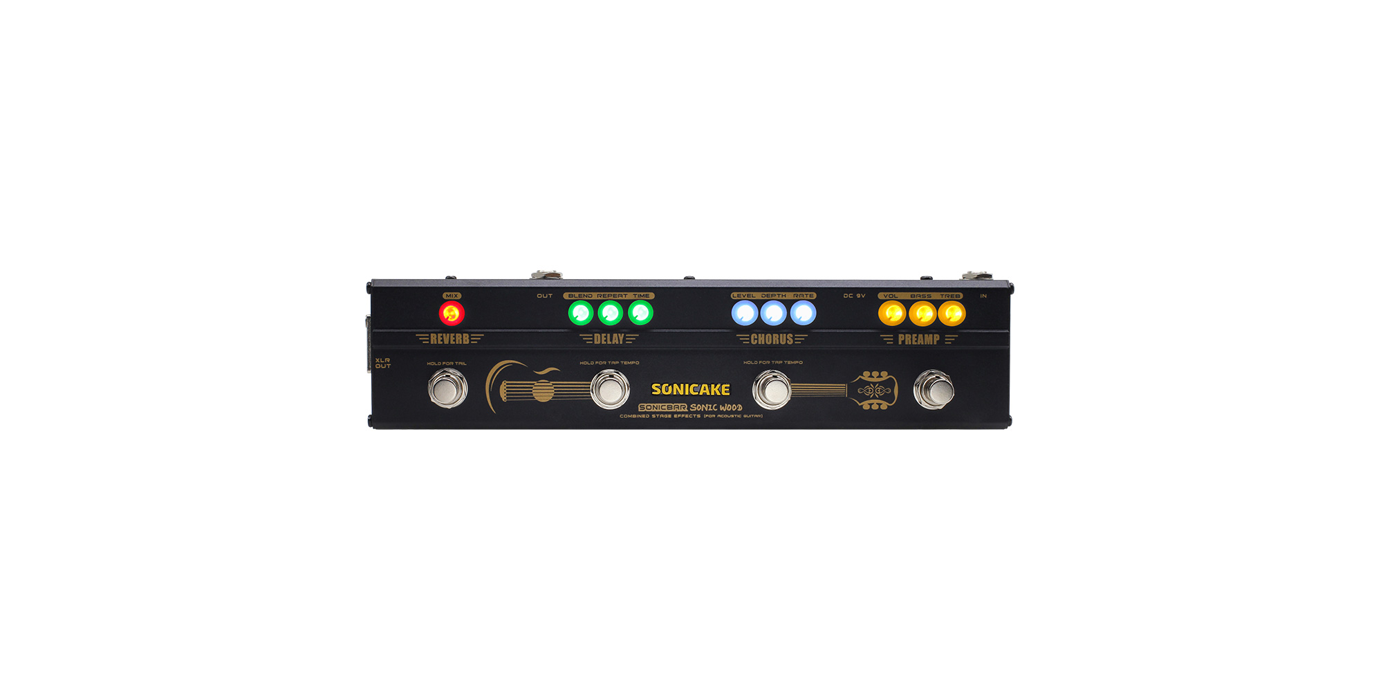 Sonic Wood è un multieffetto per chitarra acustica. Dispone di 4 effetti accuratamente selezionati, i più richiesti da qualsiasi chitarrista acustico. Una vera soluzione completa per la chitarra acustica dal vivo.