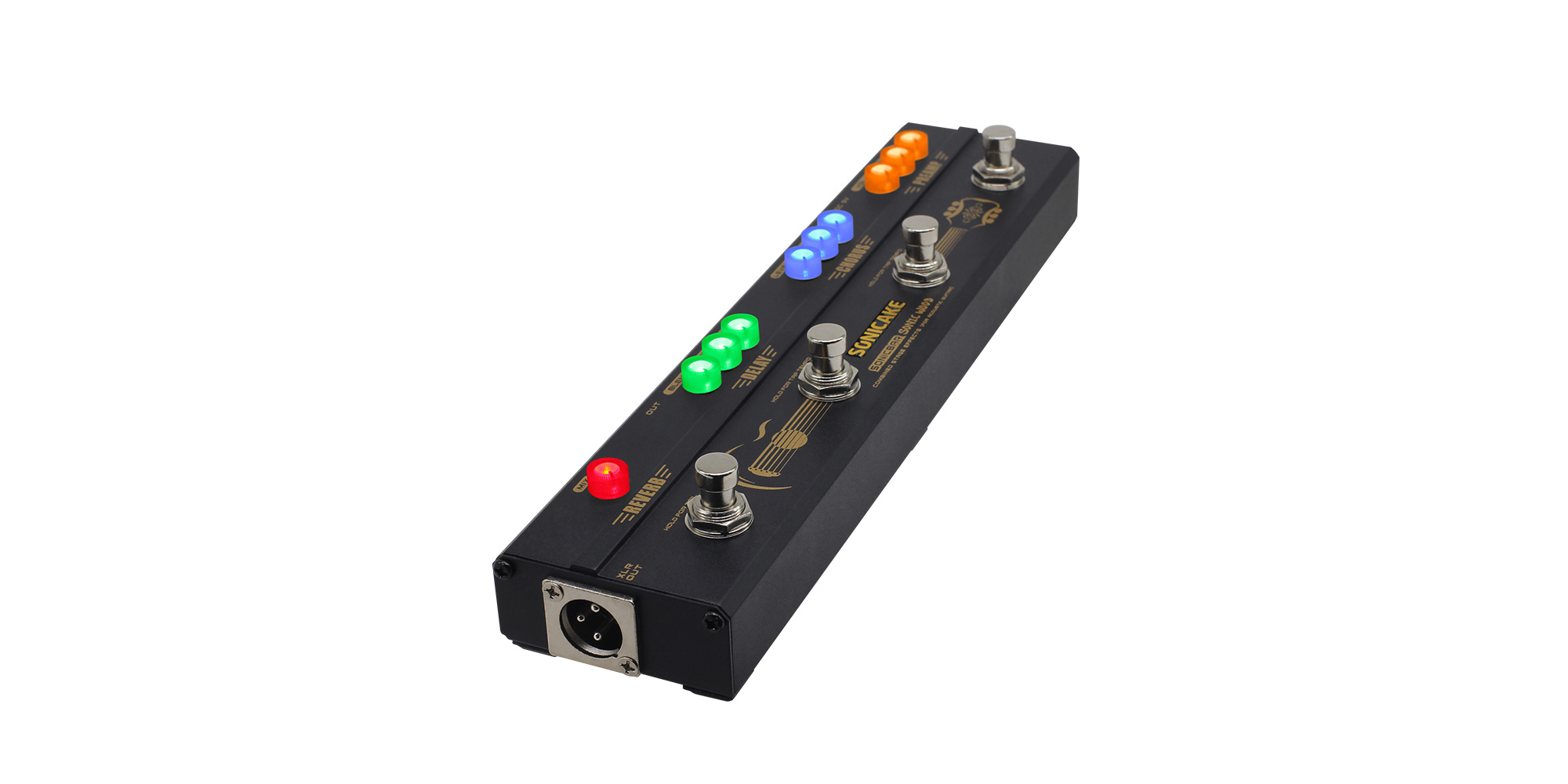 Sonic Wood ha le funzioni TAP TEMPO e TAIL. Puoi usare queste funzioni per controllare alcune cose in modo più delicato. Ha anche un'uscita XLR OUT per inviare il segnale bilanciato alla tua scheda audio o al mixer PA.