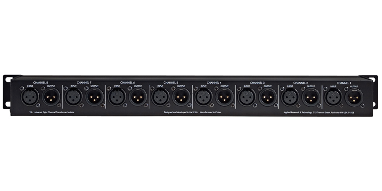 Il T8 (Transformer Eight) è un'interfaccia audio di alta qualità totalmente passiva che utilizza otto trasformatori discreti per separare le masse dei segnali d'ingresso e d'uscita, isolando così due sistemi per ridurre l'hum e il rumore dei loop di massa. I trasformatori audio del T8 hanno una risposta in frequenza estremamente piatta e ampia e sono in grado di gestire i segnali di alto livello mantenendo un'interconnessione bilanciata completamente isolata. Questo conferisce al T8 un suono molto pulito e neutro con una grande varietà di sorgenti di segnale. I trasformatori sono tagliati per un guadagno unitario 1:1 e possono essere utilizzati con impedenze da 600Ohm a 100kOhm. Il T8 fornisce contemporaneamente connessioni XLR e Jack TRS 1/4″ bilanciate e RCA su tutti gli ingressi e le uscite. Le alette per il montaggio a rack sono reversibili, in modo che il T8 possa disporre frontalmente degli XLR oppure dei jack 1/4″ e degli RCA, massimizzando la flessibilità nel cablaggio del sistema. Il set di funzionalità completo, la robusta costruzione e le specifiche di alta qualità rendono il T8 la scelta ovvia per live, installazioni fisse, D.J. e qualsiasi applicazione P.A.