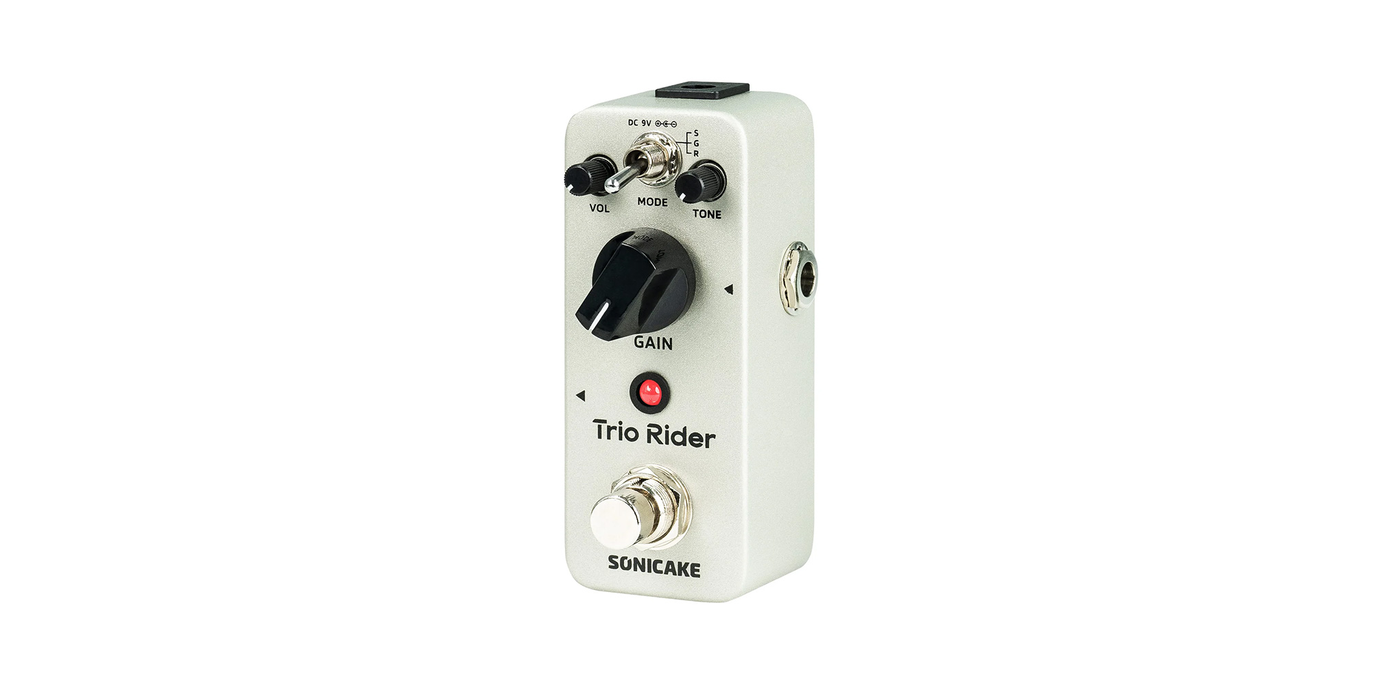 Il Sonicake Trio Rider ha una ricca gamma di regolazioni, con manopole tradizionali per il tono e il guadagno, che consentono di ottenere una varietà di tipi di suoni overdrive.