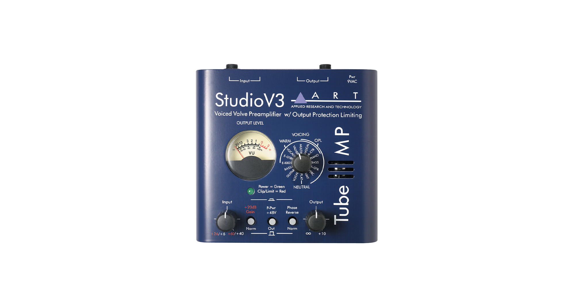 Il preamplificatore microfonico a singolo canale TubeMP StudioV3™ è dotato sia della nuova tecnologia ART V3™ (Variable Valve Voicing), sia del design valvolare ibrido ART TEC – nominato per premiazioni – per aggiungere al segnale un calore e una corposità senza pari, pur mantenendo un'alta qualità e un rumore eccezionalmente basso. Il TubeMP StudioV3™ offre prestazioni superiori e una qualità del suono che nessun preamplificatore 'incorporato' nei mixer o nelle interfacce audio di basso costo di oggi è in grado di fornire. Realizzato con tutte le caratteristiche professionali richieste ad un ingresso dalle applicazioni di registrazione o live, nel percorso del segnale l'ART TubeMP StudioV3™ usa una valvola 12AX7A selezionata a mano per offrire il massimo nel timbro e nel guadagno.