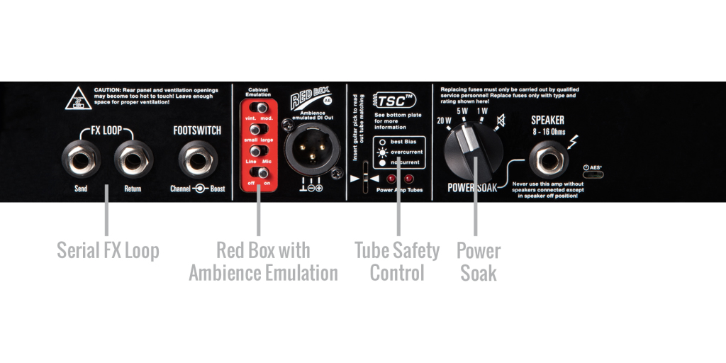 TubeMeister Deluxe 20 è anche il primo amplificatore valvolare in assoluto ad offrire una vera esperienza sonora FRFR (full range flat response). L'innovativa uscita DI Red Box AE (Ambience Emulation) consente di collegare la chitarra direttamente all’impianto di registrazione o al PA, quindi è perfetta per suonare su di un palcoscenico o in studio, offrendo un mix perfetto di sonorità 4 ×12 (Vintage/modern, Small/Large), ed un attacco ultra diretto di pura sonorità valvolare!