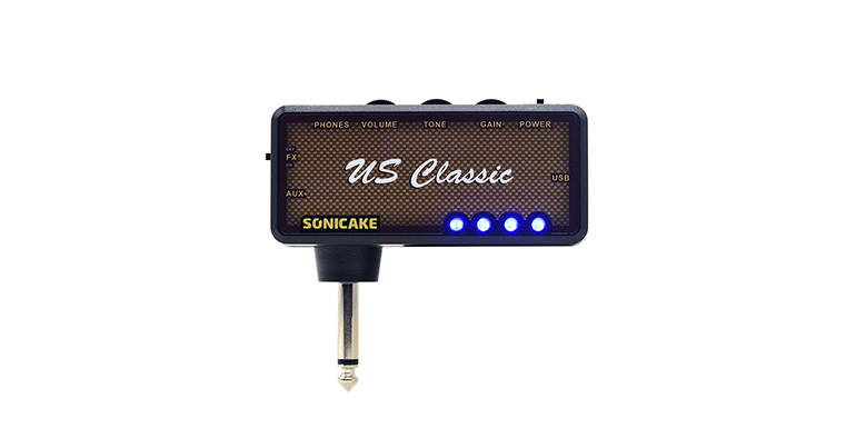 Sonicake US Classic è un amplificatore tascabile per chitarra con uscita cuffie, di tipo plug-in, progettato per offrire le caratteristiche tonali di un amplificatore combo classico americano con il rivestimento in tessuto tweed, ampiamente utilizzato in milioni di brani blues e della prima epoca del rock classico, da Brown Sugar dei Rolling Stones a Brown Sugar degli ZZ Top. Non ci si può sbagliare con quel suono leggermente sfocato e al limite del break-up. Meglio se abbinato a cuffie con un'impedenza più elevata.